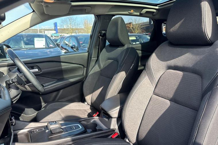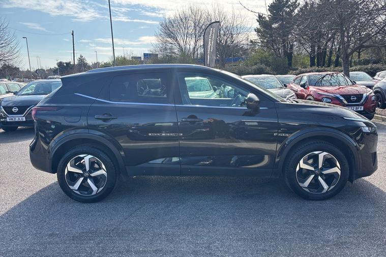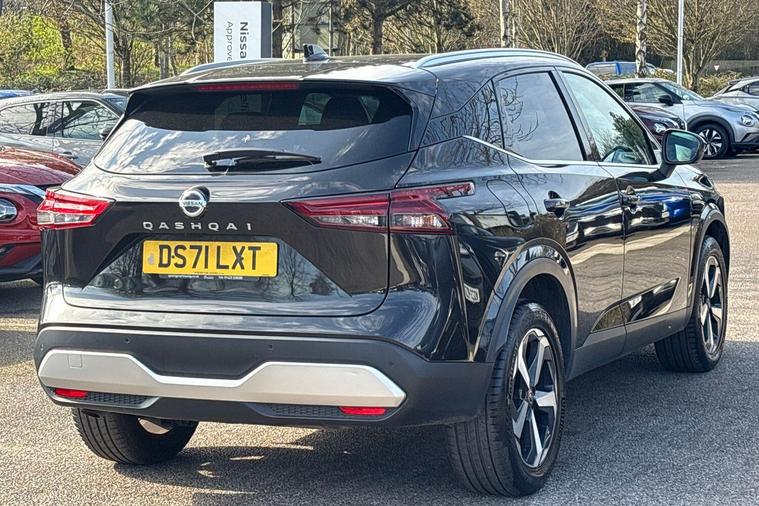This 2022 Nissan Qashqai DIG-T N-Connecta is a Nissan manufacturer approved vehicle, offering peace of mind. It features a 1.3L Petrol Hybrid engine and meets Euro 6 emission standards. This N-Connecta trim level comes equipped with a Dusk Sensor that automatically turns on the headlights, front and rear parking sensors for easier manoeuvring, and Intelligent Blind Spot Intervention alongside Blind Spot Warning to enhance your awareness of surrounding traffic. The Intelligent Around View Monitor provides a 360 degree camera view, making parking and navigating tight spaces simpler.This Qashqai stands out with its low insurance group, making it an economical choice for many drivers. You will also appreciate the generous boot space, perfect for carrying shopping, luggage, or equipment. These features, combined with its advanced safety and convenience systems, indicate how this Qashqai offers a superior driving experience compared to other vehicles in its class..