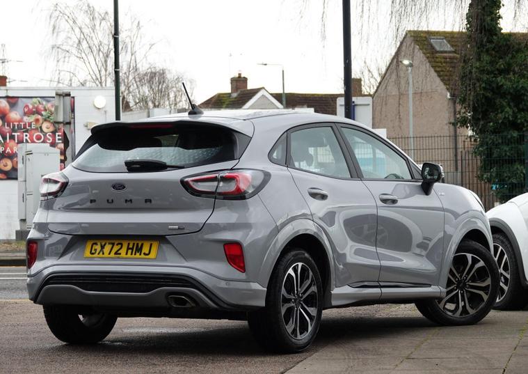 This 2022 Ford Puma ST Line offers exceptional value with its MOT valid until November 2026 and a recent service completed in August 2025 at 28, 584 miles, ensuring peace of mind for its next owner. This one owner vehicle boasts a 1.0L Petrol Hybrid engine, meeting Euro 6 emission standards, and comes with a clear vehicle history check. Notable features include a Winter Pack with heated seats and steering wheel, a Driver Assistance Pack with automatic headlights, and the Ford SYNC 3 Navigation system compatible with Android Auto and Apple CarPlay. You'll also appreciate the convenience of rear parking sensors and manual air conditioning.Experience impressive fuel economy with this Ford Puma, achieving up to 52 miles per gallon, which is a significant advantage over many similar vehicles. Its low CO2 emissions further contribute to its efficiency and environmental consideration. This ST Line variant combines sporty styling with practical hybrid technology, making it a compelling choice for those seeking a modern and economical driving experience. A 3 month warranty is also included for added reassurance..