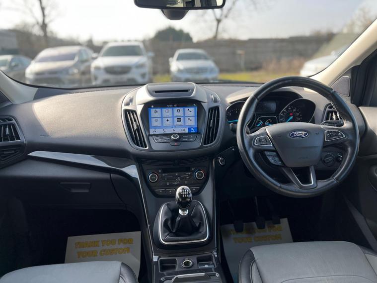 Discover this 2016 Ford Kuga TDCi Titanium, a well presented example offering an impressive 60 miles per gallon. This Euro 6 compliant model features a robust 2.0 litre diesel engine and comes equipped with the Titanium trim. Notable features include rear parking sensors for easier manoeuvring, keyless entry for convenience, and the SYNC 3 system with an 8 inch colour touchscreen, Bluetooth, voice control, USB connectivity, and emergency assistance. Automatic halogen headlights with LED daytime running lights illuminate your path, while the DEATC dual zone electronic automatic temperature control ensures a comfortable cabin environment for all occupants.This Ford Kuga stands out with its excellent fuel economy, achieving up to 60 mpg, which indicates it is more economical than many similar vehicles. Furthermore, its low insurance group and low CO2 emissions highlight its cost effectiveness and environmental consideration compared to other cars in its class..