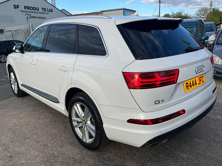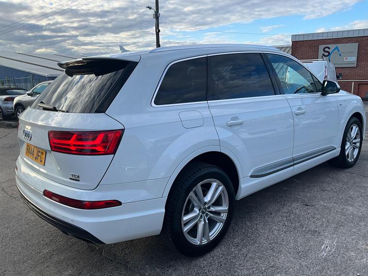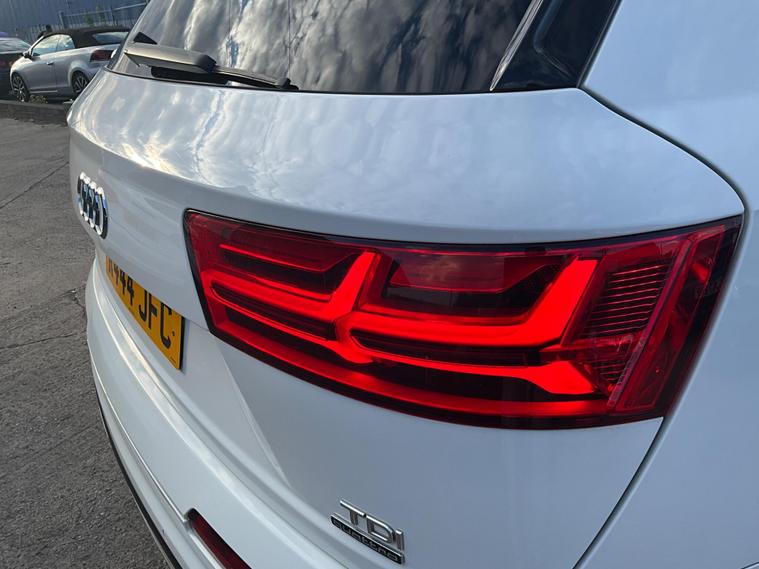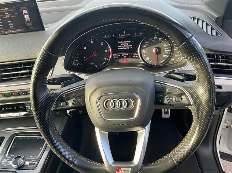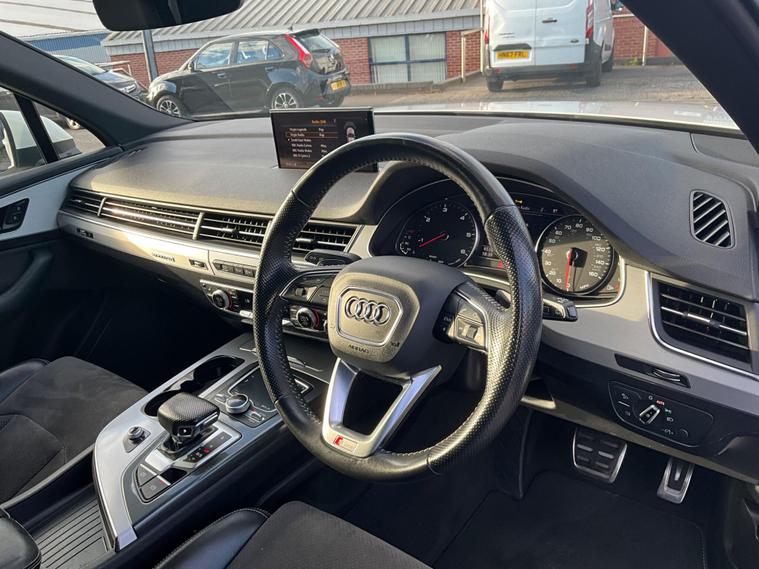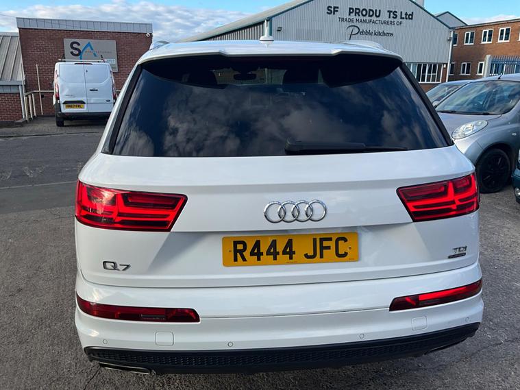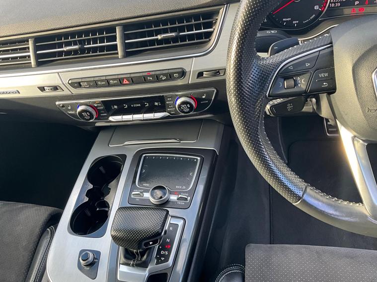 This 2017 Audi Q7 TDI V6 S line offers a compelling blend of performance and practicality, boasting a powerful 3.0L Diesel engine and a sophisticated Four Wheel Drive system. As a Euro 6 compliant vehicle, it meets stringent emission standards. The spacious interior comfortably seats seven, making it ideal for families or those needing extra capacity. Notable features include heated front seats for added comfort, a light and rain sensor for automatic headlight activation, and a Bluetooth interface for seamless connectivity. The Deluxe Four Zone Automatic Climate Control ensures everyone enjoys their preferred temperature, while the All Weather LED Headlights provide excellent visibility in all conditions. With a substantial towing weight of 2800 kg, this Q7 is also well equipped for hauling.The Audi Q7 TDI V6 S line stands out with its impressive acceleration, reaching 0-62mph in just 7.3 seconds, demonstrating its dynamic performance capabilities. This quick acceleration indicates a more responsive driving experience compared to many vehicles in its class. Furthermore, its placement in a low insurance group suggests that running costs are kept more manageable, offering an advantage over similar models. This combination of strong performance, advanced features, and favourable running costs makes the 2017 Audi Q7 TDI V6 S line a highly desirable and capable large SUV..