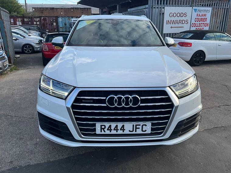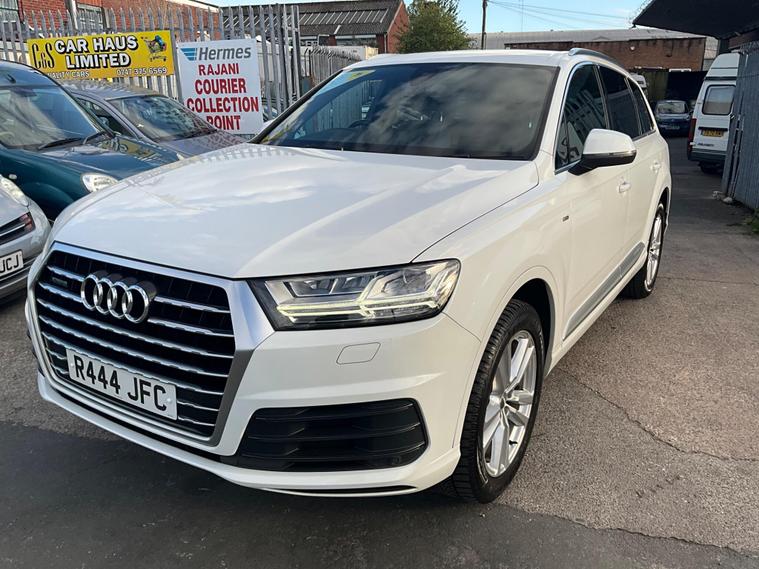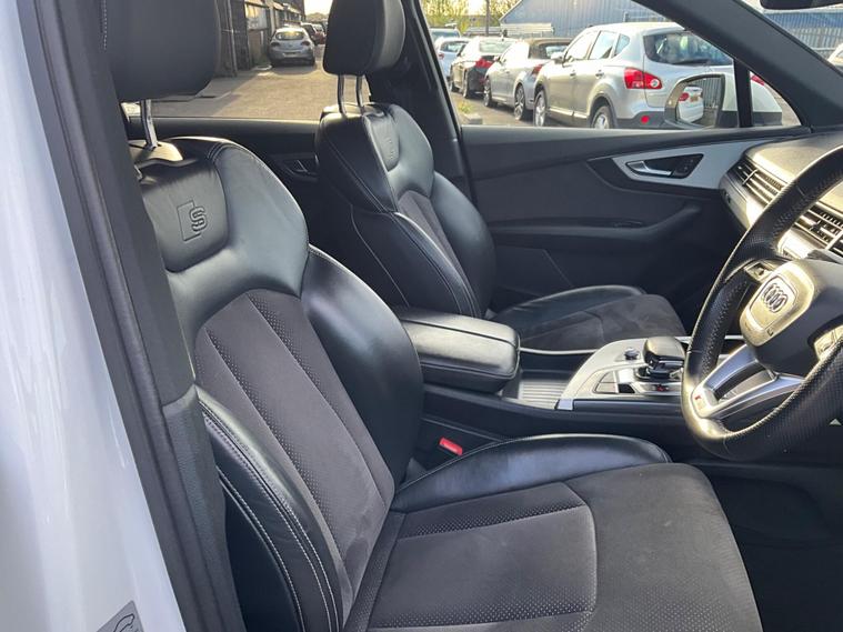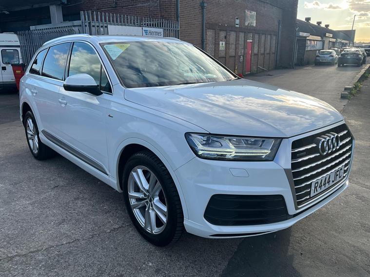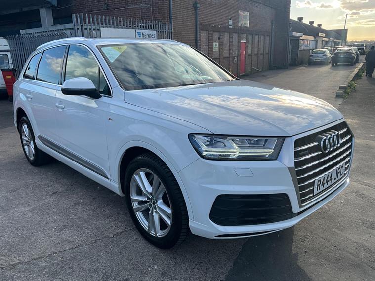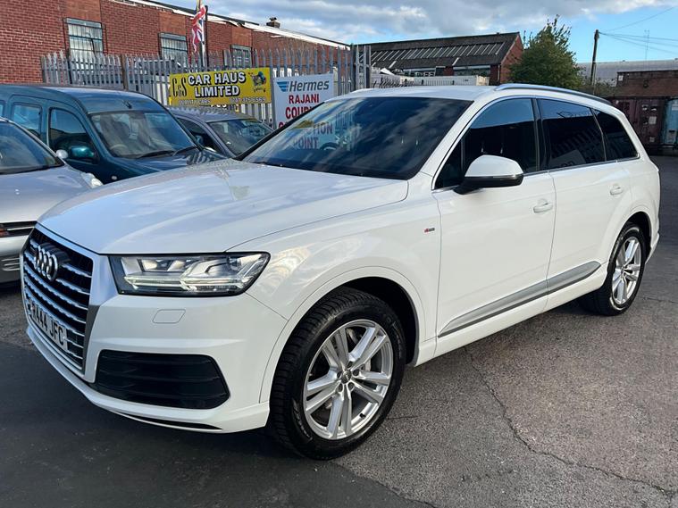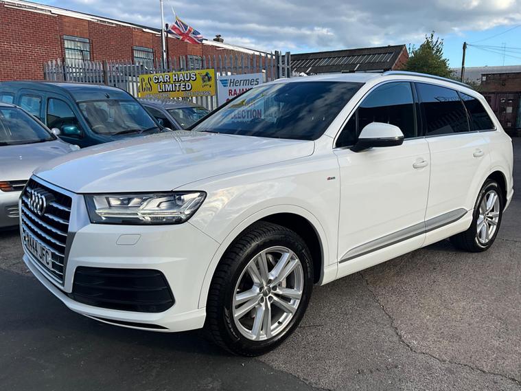 This 2017 Audi Q7 TDI V6 S line offers a compelling blend of performance and practicality, boasting a powerful 3.0L Diesel engine and a sophisticated Four Wheel Drive system. As a Euro 6 compliant vehicle, it meets stringent emission standards. The spacious interior comfortably seats seven, making it ideal for families or those needing extra capacity. Notable features include heated front seats for added comfort, a light and rain sensor for automatic headlight activation, and a Bluetooth interface for seamless connectivity. The Deluxe Four Zone Automatic Climate Control ensures everyone enjoys their preferred temperature, while the All Weather LED Headlights provide excellent visibility in all conditions. With a substantial towing weight of 2800 kg, this Q7 is also well equipped for hauling.The Audi Q7 TDI V6 S line stands out with its impressive acceleration, reaching 0-62mph in just 7.3 seconds, demonstrating its dynamic performance capabilities. This quick acceleration indicates a more responsive driving experience compared to many vehicles in its class. Furthermore, its placement in a low insurance group suggests that running costs are kept more manageable, offering an advantage over similar models. This combination of strong performance, advanced features, and favourable running costs makes the 2017 Audi Q7 TDI V6 S line a highly desirable and capable large SUV..
