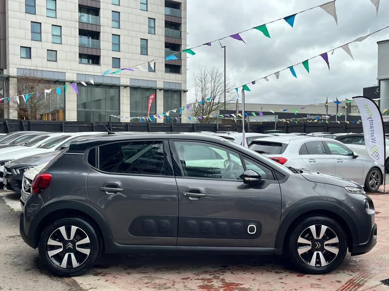 SELECT MOTORS (GB) IS DELIGHTED TO OFFER YOU THIS STUNNING C3 1.2 PURE TECH 5DR IN GREY COLOUR AND COMPLEMENTED WITH 16IN MATRIX DESIGN ALLOY WHEELS. THIS VEHICLE IS EQUIPPED WITH ADVANCE FEATURES; SATELLITE NAVIGATION SYSTEM, CARPLAY FOR IPHONE AND ANDROID AUTOS, REVERSING CAMERA FOR PARKING, LANE DEPARTURE WARNING SYSTEM, BLUETOOTH CONNECTIVITY FOR PHONE AND MEDIA, DAB-FM/AM RADIO, CRUISE CONTROL WITH SPEED LIMITER, CITROEN ILLUMINATED SIGNATURE IN LED HEADLIGHTS AND LED DAYTIME RUNNING LIGHTS, TYRE PRESSURE WARNING SYSTEM. THIS VEHICLE IS ULEZ EXEMPT. WE ARE OFFERING NATIONWIDE DELIVERY ON ALL VEHICLE (PLEASE GET IN TOUCH DIRECTLY FOR DETAILS). WE CAN ALSO CONDUCT VIRTUAL VIEWINGS AND ACCOMMODATE ANY REQUESTS YOU MAY HAVE. ALL OUR ADVERTISED STOCK IS TEST-DRIVEN, INSPECTED BY OUR MECHANIC TO MAKE SURE OUR CUSTOMERS DRIVE AWAY WITH THE BEST QUALITY CARS. WE CAN PROVIDE A VIDEO WALK AROUND THIS VEHICLE UPON REQUEST., ALL OF OUR VEHICLES ARE SUPPLIED WITH A 3 MONTHS WARRANTY WITH EXTENDED OPTION. 12 MONTHS FREE AA BREAKDOWN COVER. FINANCE AVAILABLE..