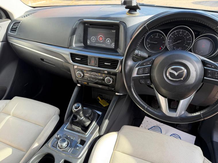 This 2015 Mazda CX-5 SKYACTIV-D Sport Nav boasts a clear vehicle history, offering peace of mind alongside its impressive specification. This Four Wheel Drive model features a 2.2 litre diesel engine, meeting Euro 6 emission standards. Inside, you'll find comfortable Stone leather upholstery, complemented by a premium BOSE Centrepoint Surround Sound System for an enhanced audio experience. Parking is made easier with front and rear parking sensors, and the Safety Pack includes Blind Spot Assistance and LED headlights for added security.The CX-5 SKYcdot-D Sport Nav demonstrates excellent efficiency, achieving up to 54 miles per gallon, which is better than many similar vehicles. It also benefits from a low CO2 emission rating and falls into a low insurance group, making it an economical choice. With a brisk 0-62mph acceleration time of just 8.8 seconds, it offers a responsive drive. Furthermore, the generous boot space ensures practicality for all your needs..