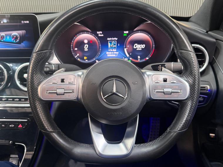 Boasting exceptionally low mileage for its age, this 2019 Mercedes-Benz C220d AMG Line (Premium Plus) presents a superb ownership opportunity. With only two previous owners and a clear vehicle history check, this Euro 6 compliant diesel model offers a compelling blend of performance and refinement. The AMG Line trim enhances its sporty appeal, complemented by striking 19 inch alloy wheels painted in high gloss black.Experience a truly premium drive with the extensive Premium Plus Package. This includes convenient keyless entry, a panoramic opening sunroof, and advanced 360 degree parking assistance alongside front and rear sensors for effortless manoeuvring. Stay connected and entertained with smartphone integration for both Android Auto and Apple CarPlay, a branded sound system, and LED headlights. Enjoy personalised comfort with the two zone automatic climate control, and benefit from the convenience of wireless phone charging. This C Class accelerates from 0 to 62mph in a swift 6.9 seconds, and its low CO2 emissions highlight its efficiency, making it a more economical choice compared to many similar vehicles..