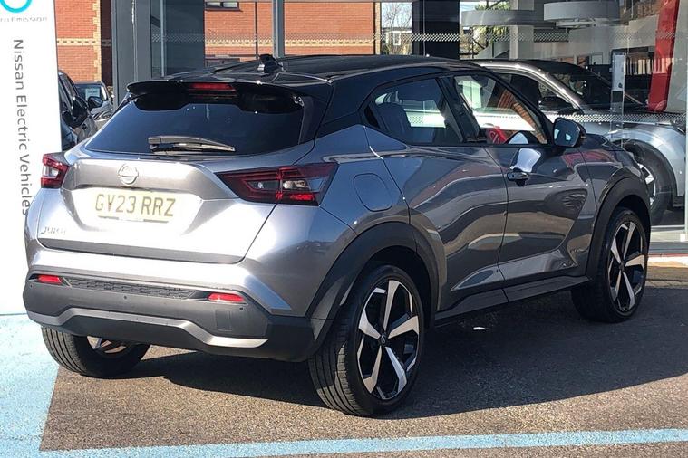 This 2023 Nissan Juke Tekna offers exceptional peace of mind with its remaining 12 months warranty and full service history, being Nissan manufacturer approved. This stylish 1.6L Petrol Hybrid model, registered in 2023, boasts a Euro 6 emission class and has covered a remarkably low 16175 miles for its age. Experience seamless entry and ignition with the Intelligent Key and Start Push Button, featuring convenient Walk Away Lock and Approach Unlock functions. Stay connected on every journey with integrated Apple CarPlay and Google Android Auto, ensuring your favourite apps are always accessible.The Nissan Juke Tekna stands out with its impressive fuel economy, achieving a highlight of 55 mpg, which indicates it is more economical than many similar vehicles. Furthermore, its low insurance group and low CO2 emissions highlight its cost effectiveness and environmental consideration compared to other cars in its class. This Juke Tekna is a well maintained and feature rich option for those seeking a modern and efficient compact SUV..