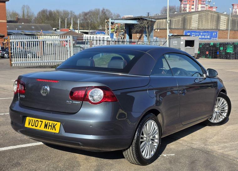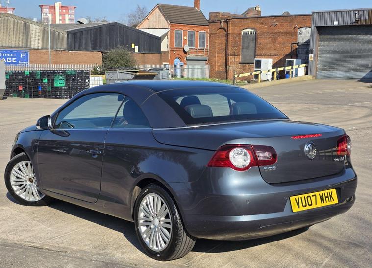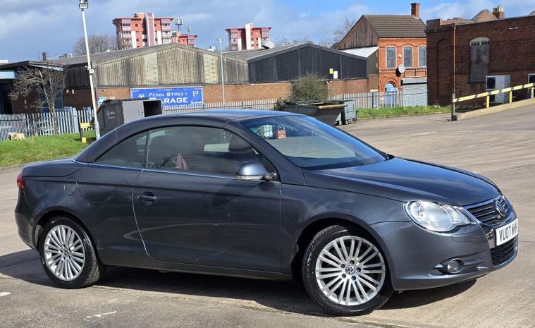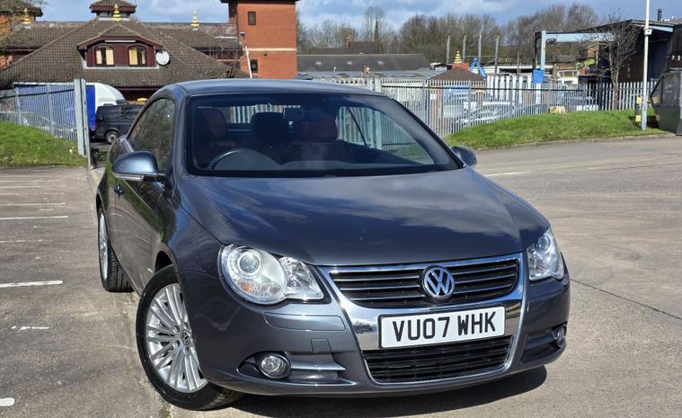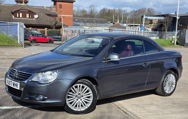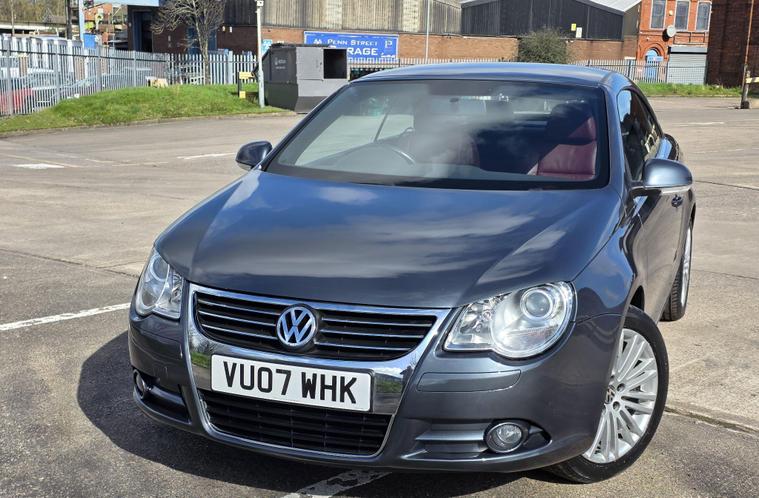 STOP LOOKING YOU HAVE FOUND THE ONE, I HAVE THE ORIGINIL BILL OF SALE, I HAVE THE BROCHURES FROM THE TIME OF PURCHASE, I HAVE THE WHAT CAR ROAD TEST REPORT, 1 SINGLE PRIVATE ENTHUSIAST OWNER, UNIQUIE IN THE MARKET PLACE, THIS IS TRULY ONE OF THE VERY BEST IF NOT THE VERY BEST ON SALE RIGHT NOW, STUNNING CONDITION, TIMING BELT BEEN DONE, INVOICE FOR OVER £1000, DRIVES AND FEELS MORE LIKE THE MILEAGE THAN THE AGE, EVEN THE WIND DEFLECTOR IS STILL IN ITS ORIGINAL BOX, EVERYTHING WORKS, ELECTRIC FOLDING HARD TOP, UNMARKED CRANBERRY LEATHER CONTRASTING THE GREY PAINTWORK, NEW TYRES FOR THE MOT, 2 REMORE KEYS, CENTER ARM REST, TAILORED CAR MATS, This 2007 Volkswagen Eos TDI Sport presents a unique ownership history, having been cherished by just one owner since new. Powered by a 2.0 litre diesel engine, this Sport trim model offers an engaging driving experience. Inside, you'll find the RCD 300 radio with a single CD player and four speakers, perfect for your favourite tunes. Comfort is further enhanced by the semi automatic air conditioning system, which includes climate control to keep you at the ideal temperature.The Eos TDI Sport stands out with its appealingly low insurance group, suggesting that running costs could be more affordable compared to similar vehicles. This combination of single ownership, a capable diesel engine, and thoughtful features makes this Volkswagen Eos a compelling choice for those seeking a well maintained and practical convertible..