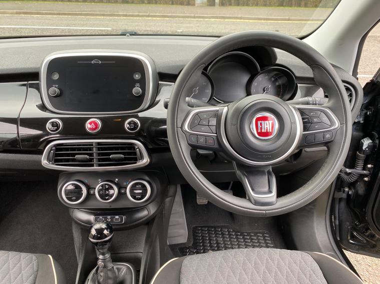 This 2019 Fiat 500X FireFly Turbo City Cross boasts a single owner from new, offering a well maintained example of this stylish compact SUV. Powered by an efficient 1.0 litre petrol engine, this Euro 6 compliant model is presented in the City Cross trim. It comes with a 6 month warranty for your peace of mind, and its MOT is valid until September 2026. While it has partial service history, this 500X is equipped with desirable features including automatic dual zone climate control, rear parking sensors for easier manoeuvring, and a 7 inch HD touchscreen DAB radio with Bluetooth, USB and AUX connectivity. Seamlessly integrate your smartphone with Apple CarPlay and Android Auto.The appeal of this Fiat 500X is further enhanced by its low CO2 emissions and its position within a low insurance group, indicating that running costs are kept to a minimum compared to similar vehicles. These factors, combined with its single owner provenance and comprehensive MOT, make this 500X City Cross a sensible and attractive choice for those seeking a practical yet fashionable compact SUV..
