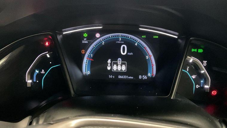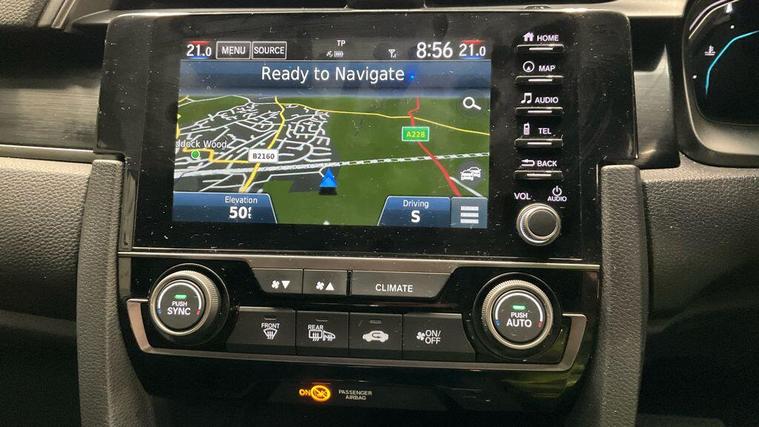 This 2020 Honda Civic i-DTEC SR boasts a clear vehicle history, offering you peace of mind. This Euro 6 compliant 1.6 litre diesel model comes with the SR trim and features Honda CONNECT with GARMIN Navigation, which includes Android Auto, and Bluetooth Hands Free Telephone for seamless connectivity. You'll also appreciate the convenience of Intelligent Adaptive Cruise Control, Dual Auto Climate Control, and a Rear Parking Camera to assist you.Experience impressive efficiency with this Honda Civic, achieving a remarkable 63 mpg, which is better than many similar vehicles. Its low CO2 emissions also contribute to its appeal, alongside a low insurance group making it an economical choice. The generous boot space provides ample room for your luggage, and with an acceleration of 0-62mph in just 9.9 seconds, it offers a responsive drive..