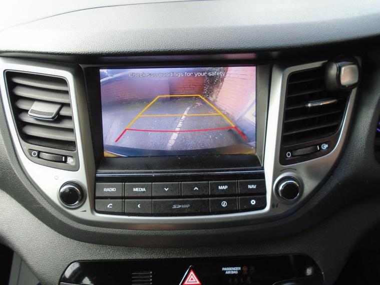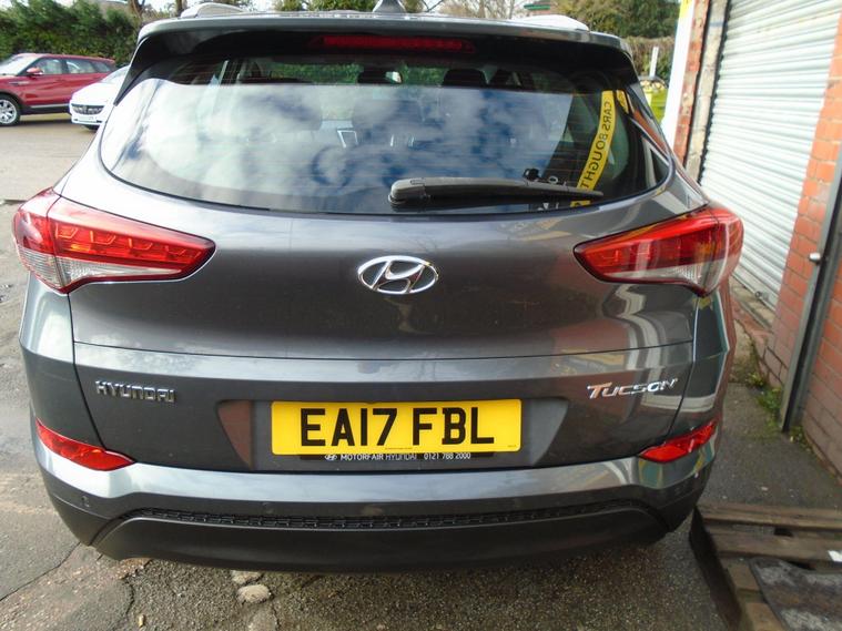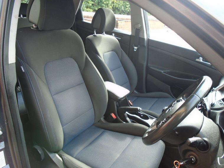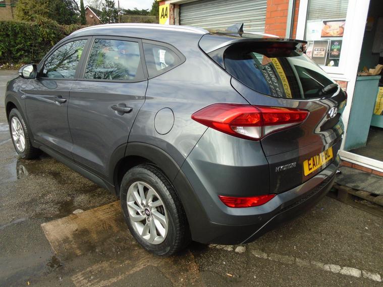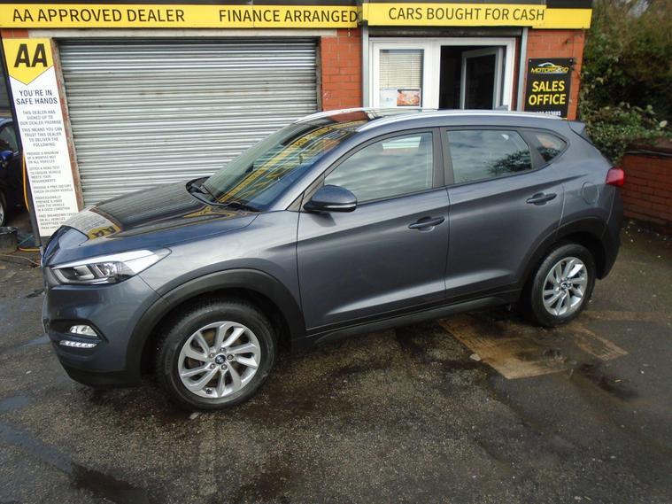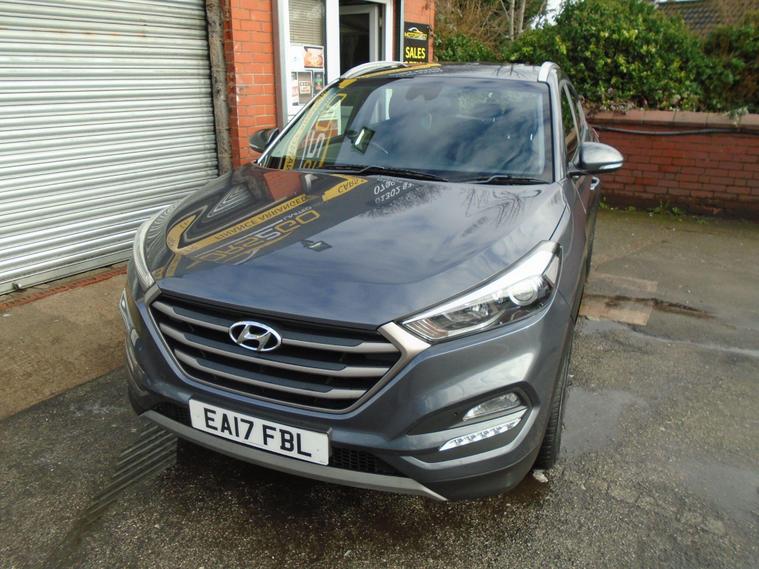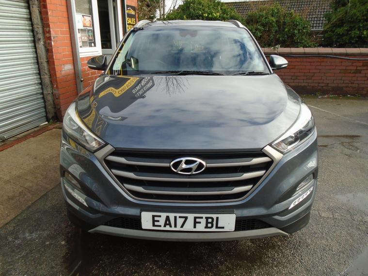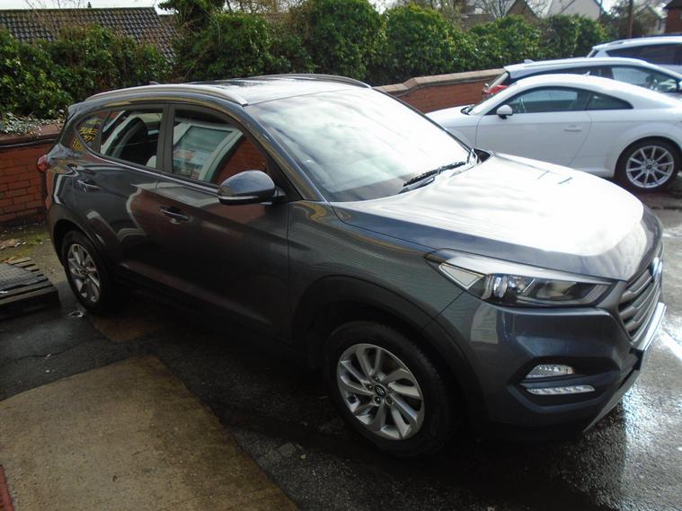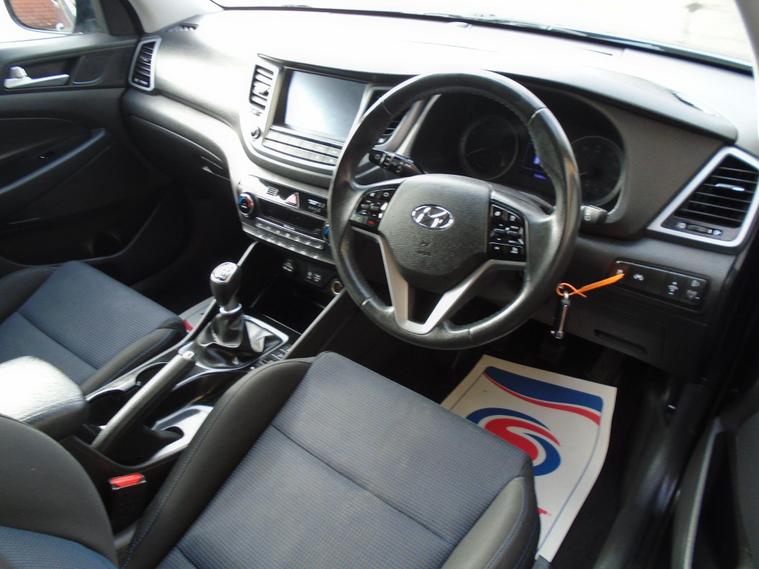 HYUNDAI TUCSON 1.6 GDI BLUE DRIVE SE NAV 5 DOOR EURO 6.STUNNING EXAMPLE OF THIS ONE PREVIOUS OWNER FROM NEW TUCSON IN METALLIC GREY WITH FULL TWO TONE BLUE BLACK CLOTH INTERIOR.GREAT SPEC WITH SAT NAV, BLUETOOTH CONNECTIVITY, HEATED SEATS, REAR PARKING SENSORS, REAR CAMERA, USB+AUX, 17 INCH ALLOY WHEELS AND TWO dealer's website WITH MOT UNTIL MARCH 2027 AND FRESH SERVICE.12 MONTHS FREE AA BREAKDOWN COVER AND 18 MONTHS WARRANTY INCLUDED IN PRICE.FINANCE AVAILABLE P/X WELCOME..