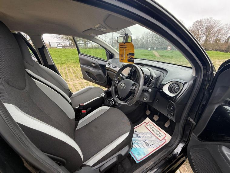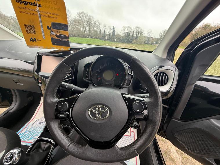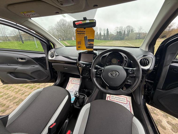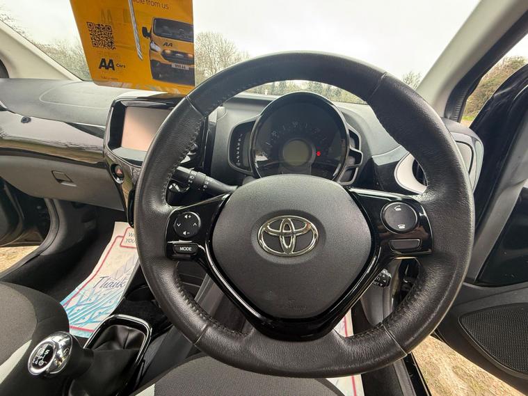 Toyota AYGO 1.0 VVT-i x-clusiv Hatchback 5dr Fuel Type: PetrolTransmission: ManualColour: BlackBody Type: 5 Door HatchbackULEZ CompliantKey Features & SpecificationAlloy WheelsAir ConditioningHPI ClearWarranted MileageCondition & PerformanceMechanically PerfectEngine Wise Powerful & Smooth (68 ps)Gearbox & Suspension Very SmoothVery Well Maintained CarComfortable SeatsLooks & Drives BrilliantJust Buy & DriveDealer PackageFRESH SERVICEFRESH MOTFREE BREAKDOWN COVERNATIONWIDE DELIVERY AVAILABLELow InsuranceVery EconomicalPart Exchange WelcomeView By Appointment OnlySummaryA smart and economical Toyota AYGO x-clusiv in black, ideal for city driving with excellent fuel efficiency and low running costs. Reliable, practical and easy to drive.Truly Superb Throughout – First To See Will Buy..