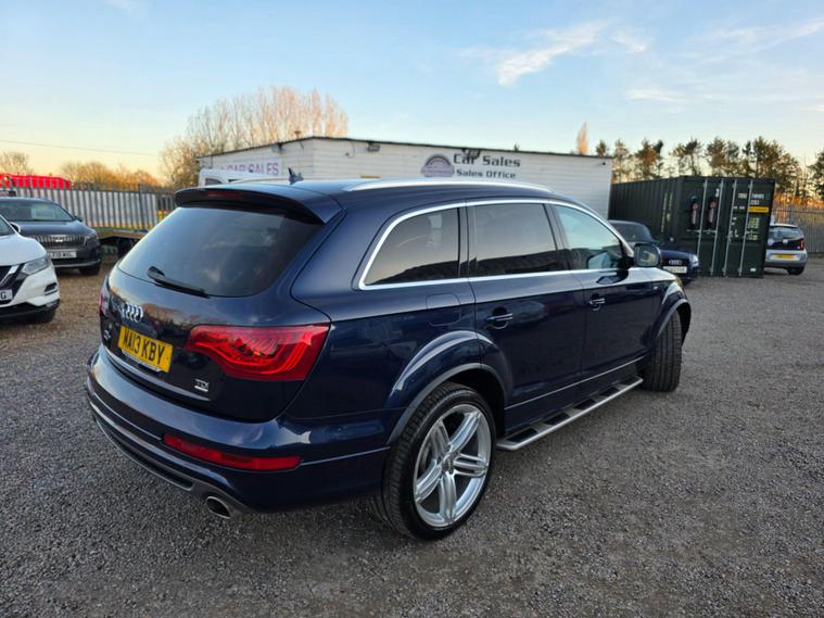 Audi Q7 3.0TDI Quattro, Only 96k milrs on the odometer with service history including service just done by us, MOT until March 2027.Lovely.condition inside and outside and drives very well indeed.This vehicle comes with 2 keys, front and back parking sensors, satnav, rear camera/front.camera, both front memory seats and electric, heated seats, air suspension, electric tailgate, alloy wheels on 21 inch with all 4 very good tyres on them and many more.Before sale vehicle will be supplied with 3 months electrical and mechanical warranty including parts and labour and 12 months AA Breakdown Cover. Extended warranty available as well on request.HPI Certificate Clear, 2 keys, service history including service just done by us, mot March 2027, super clean inside and outside, 7 seater, £11000 part ex welcome.Nationwide delivery available as well and can be arranged upon purchase of the vehicle..