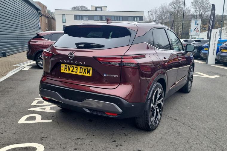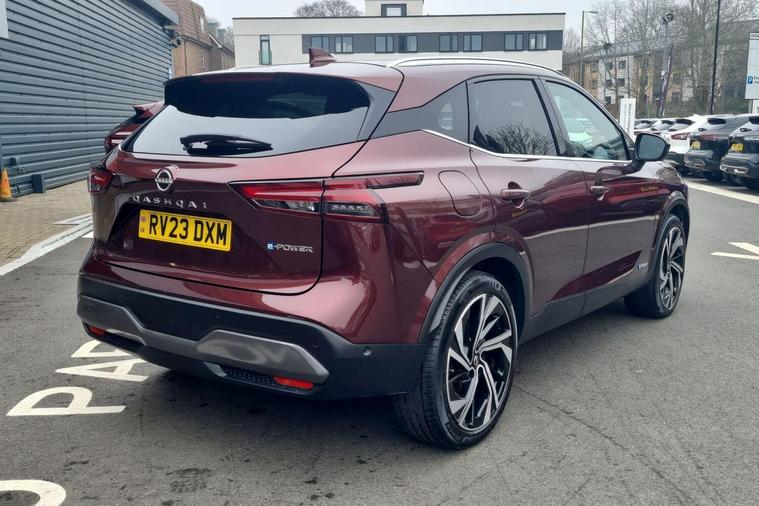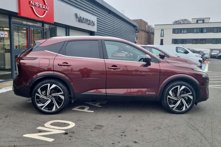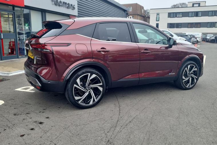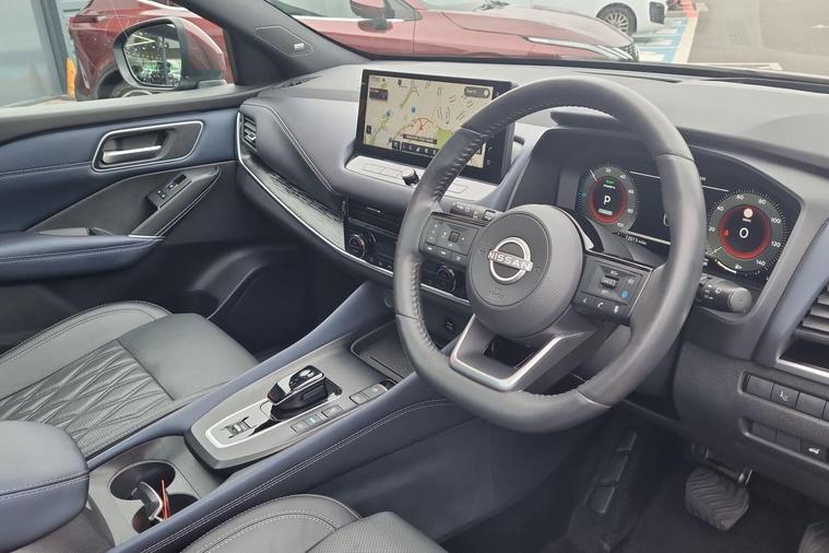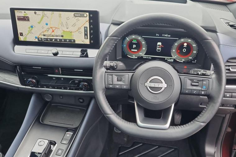 This 2023 Nissan Qashqai h e-POWER Tekna+ is Nissan manufacturer approved, offering you complete peace of mind. This impressive vehicle features a 1.5 litre petrol hybrid engine and meets the Euro 6 emission class. The Tekna+ trim level ensures a premium experience, complemented by notable features such as Intelligent Blind Spot Intervention, an Advanced Windscreen Head Up Display, and heated front seats for enhanced comfort. Enjoy seamless connectivity with wireless Apple CarPlay and effortless manoeuvring thanks to the integrated rear view camera.Experience efficiency and performance with this Qashqai, achieving an impressive 53 miles per gallon and low CO2 emissions, demonstrating its advantage over many other vehicles. Its acceleration is also noteworthy, reaching 0 to 62 miles per hour in just 7.9 seconds, indicating a responsive and engaging drive..