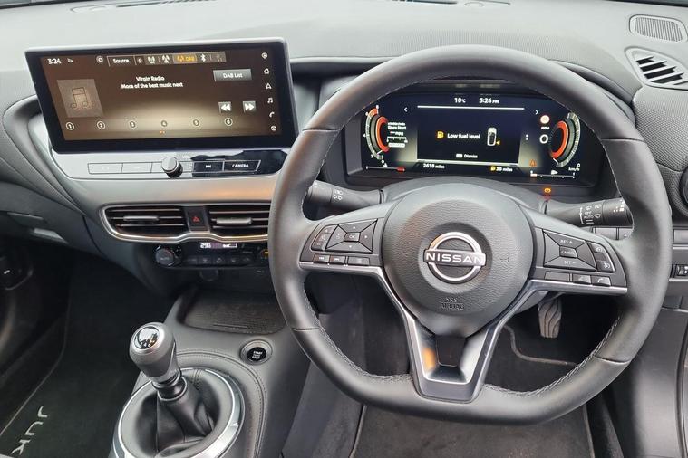 This 2025 Nissan Juke DIG-T N Connecta offers an exceptional ownership proposition with an incredibly low mileage of just 2558 miles. This one owner vehicle, finished in the N Connecta trim, is powered by an efficient 1.0 litre petrol engine meeting Euro 6 emissions standards. It comes equipped with a host of modern conveniences including Apple CarPlay and Google Android Auto for seamless smartphone integration, and an Intelligent Key system with walk away lock and approach unlock functions for effortless access. You'll also appreciate the automatic climate control to maintain a comfortable cabin temperature and the convenient wireless phone charger, ensuring your devices are always ready to go.The highlights of this Nissan Juke demonstrate its superior offering compared to other vehicles in its class. Its impressive fuel economy of 49 miles per gallon means fewer trips to the petrol station, and its low CO2 emissions are beneficial for the environment. The inclusion of front parking sensors further enhances the driving experience, making manoeuvring in tight spaces simpler and more secure. This Juke is a well appointed and economical choice for any driver..