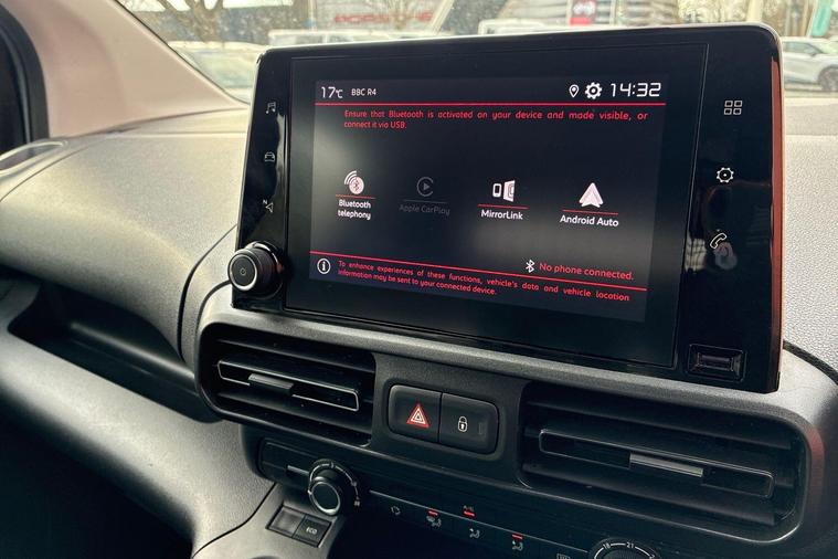 This 2023 Citroen Berlingo Feel M is a Citroen manufacturer approved vehicle, offering peace of mind with a 12 month warranty and a full service history. This 1.5 BlueHDi Feel M EAT Euro 6 (s/s) 5dr model features a 1.5 litre diesel engine and comes equipped with rear parking sensors for easier manoeuvring, manual air conditioning for your comfort, and automatic headlights as part of the Visibility Pack. Stay connected on the go with the Bluetooth telephone facility and enjoy seamless integration with your smartphone thanks to Mirror Screen, which supports both Apple CarPlay and Android Auto.This Berlingo stands out with its impressive fuel economy, achieving up to 52 miles per gallon, which is a significant advantage for your running costs. Furthermore, its low CO2 emissions mean it is kinder to the environment, and it also benefits from a low insurance group, making it an economical choice to own and run compared to many other vehicles..