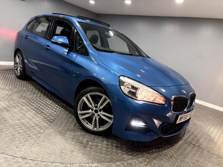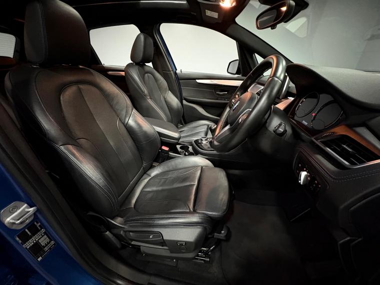 This 2018 BMW 2 Series Active Tourer 218i M Sport finished in Estoril Blue with Black Leather offers exceptional provenance, having been owned by just one person and boasting a low mileage of 34801 miles for its age. As a Euro 6 compliant model, it features a 1.5 litre petrol engine and the sporty M Sport trim, which includes distinctive M Sport badging and a Gearshift Lever with M Designation for a short shift. Comfort and convenience are enhanced by a Panoramic Glass Sunroof, automatic two zone climate control, and Bluetooth hands free with USB audio interface. Parking is made easier with rear park distance control.This particular 218i M Sport stands out with its impressive acceleration, reaching 0-62mph in just 9.3 seconds, demonstrating its responsive performance. The large boot space offers practicality for everyday needs and longer journeys, while its low CO2 emissions indicate a more efficient drive compared to many similar vehicles. These combined attributes make this BMW 2 Series Active Tourer a compelling choice for those seeking a well maintained, feature rich, and engaging driving experience.SpecificationsThe data displayed above details the usual specification of the most recent model of this vehicle. It is not the exact data for the actual vehicle being offered for sale and data for older models may vary slightly. We recommend you check the vehicle details with your sales advisor before you buy..