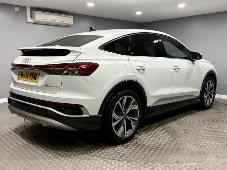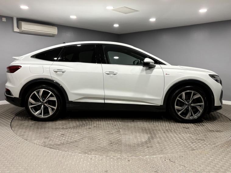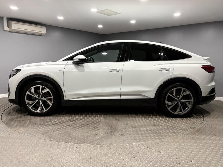 This Audi Q4 e-tron SPORTBACK Launch Edition presents a superb opportunity, having been owned by just one discerning individual. As a fully electric vehicle, it boasts an impressive 82 kWh battery, offering a substantial maximum range of 313 miles when new. Glacier white with heated black leather, 2 keys, This model comes equipped with the convenient Audi Smartphone Interface, allowing seamless integration of Android Auto and Apple CarPlay, SONOS speakers, keyless go, digital matrix LED headlights, alongside a Bluetooth Interface for effortless connectivity. For enhanced safety and ease of parking, it features Audi Side Assist, which includes Blind Spot Assistance, and Rear Parking Sensors. Audi serviced, long MOT and 2 keys.PART EXCHANGE WELCOME, FINANCE AVAILABLE..