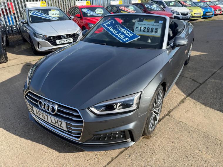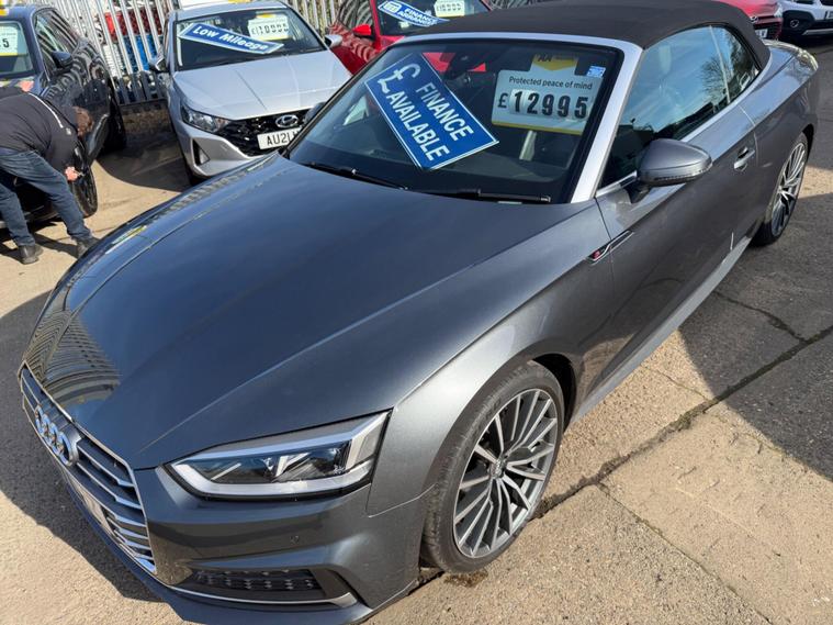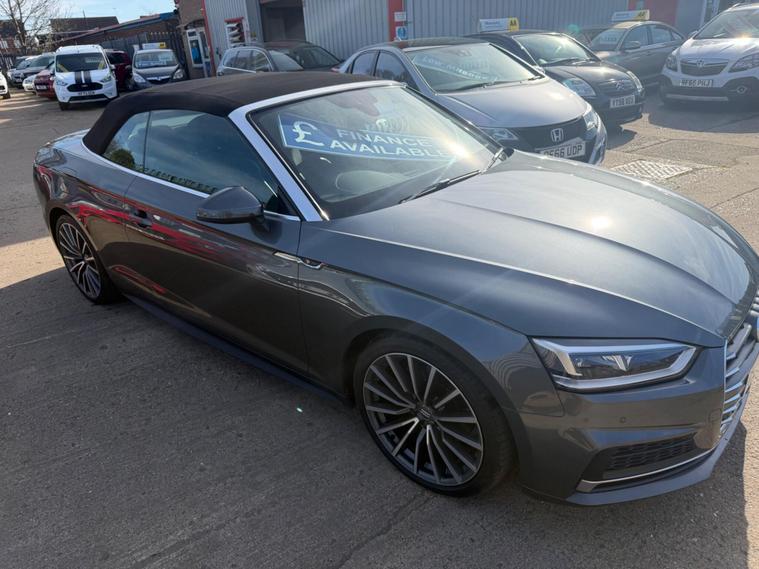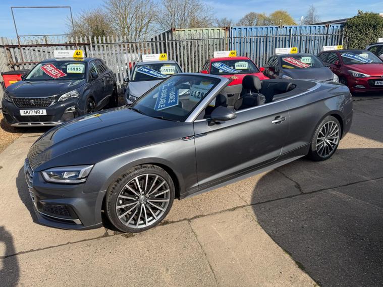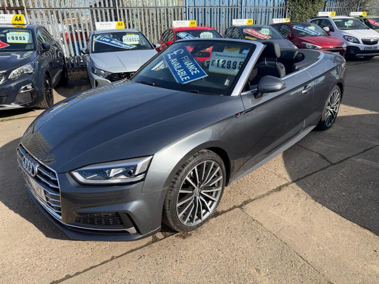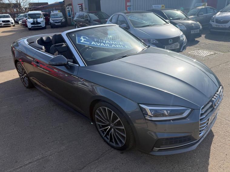 LOOK AT THIS SUCH GREAT VALUE!WHAT A CAR FOR THE MONEY!, This 2017 Audi A5 Cabriolet TFSI S line offers a superb ownership history, having been looked after by only two owners. As a Euro 6 compliant vehicle, it features a 2.0 litre petrol engine and benefits from the desirable S line trim. You'll appreciate the convenience of Keyless Go for effortless entry and starting, alongside the comfort of Deluxe 3-Zone Climate Control and Heated Front Seats. Navigating tight spots is made simple with the Audi Parking System Plus, incorporating front and rear sensors, while the striking LED Headlights with Dynamic Rear Indicators ensure excellent visibility and a distinctive presence.This A5 Cabriolet also boasts impressive efficiency, achieving a highlight fuel economy of 48 miles per gallon, which is better than many similar vehicles. Its low CO2 emissions further contribute to its economical running costs. Practicality is not overlooked, with a generous boot space that provides ample room for your luggage. These highlights demonstrate how this Audi A5 Cabriolet stands out from the crowd.ANOTHER CAR, DIRECT FROM ITS 2ND OWNER!, AVAILABLE NOW!, PLEASE CALL FOR MORE INFORMATION!.WE WELCOME ANY TRIAL OR INSPECTION ON ANY OF OUR CARS.PLEASE CALL FOR MORE DETAILS, WE STRONGLY ADVISE TO CALL TO MAKE AN APPOINTMENT TO VIEW, PRIOR TO SETTING OFF ON A LONG JOURNEY, TO CHECK CAR IS STILL AVAILABLE., AA CARS STANDARDS DEALER, IN ASSOCIATION WITH TRADING STANDARDS APPROVED CODE.BUY WITH CONFIDENCE FROM A REPUTABLE RECOGNISED DEALER.12 Months M.O.T(If less than 6 Months), Service as required, 3 Months Warranty included, 12 Months Assistance package, with home start and relay options available, ***FINANCE AVAILABLE!!(Subject to terms and conditions)** dealer's website PLEASE CALL 01945802482 OR 01945802482..