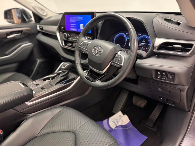 This 2023 Toyota Highlander VVT-h Excel Premium is a superb example, having had only one owner since new. This Euro 6 compliant, four wheel drive SUV boasts a powerful yet efficient 2.5 litre petrol hybrid engine, offering a smooth and responsive driving experience. With seven seats, it is ideal for families or those who need extra space. The Excel Premium trim level comes equipped with a host of desirable features, including Bluetooth connectivity for seamless phone integration, and a reversing camera with a washer function to aid parking. Drivers will appreciate the convenience of seats with a memory function, ensuring your preferred driving position is always readily available, while Intelligent Adaptive Cruise Control takes the stress out of longer journeys.The performance of this Highlander is further enhanced by its Intelligent Front and Rear Parking Sensors, complete with clearance sonar and automatic braking, providing confidence in tight spaces. Accelerating from 0 to 62 miles per hour in just 8.3 seconds, this vehicle demonstrates impressive agility for its size. These features collectively indicate how this Toyota Highlander offers a superior driving experience and a higher level of convenience compared to other vehicles in its class..