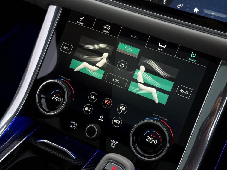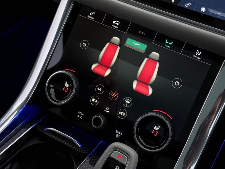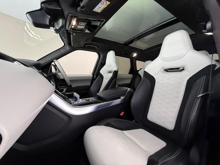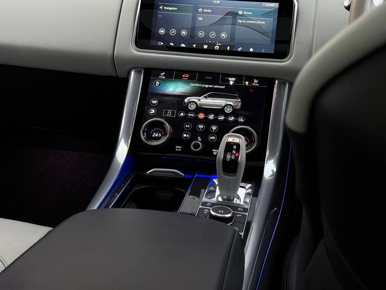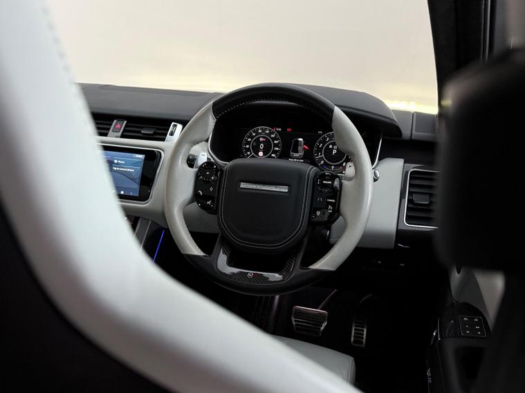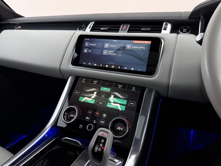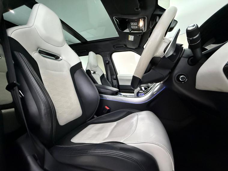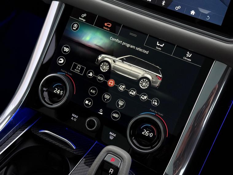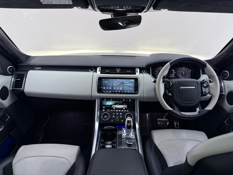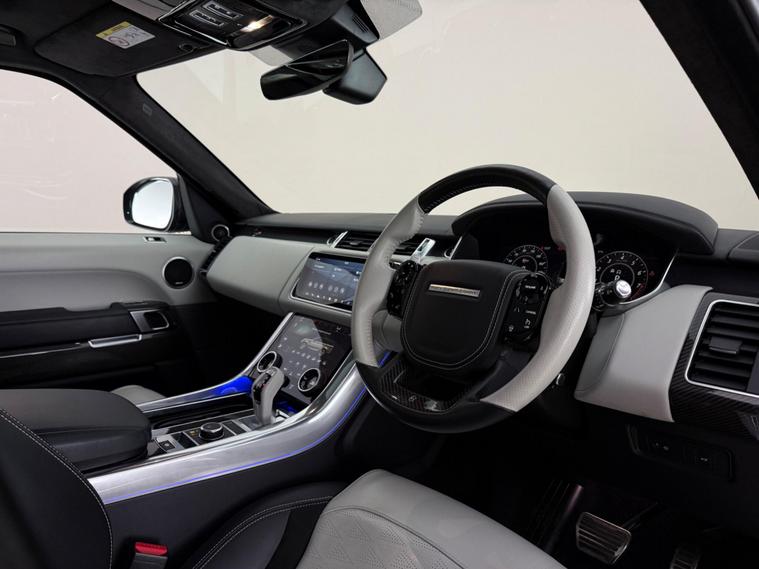 Our Land Rover Range Rover Sport P575 V8 SVR Carbon Edition is finished in Black. With a great specification, our Range Rover Sport includes features such as 22 Inch Alloy Wheels, Electric Folding Mirrors, Front and Rear Electric Windows, Panoramic Sunroof, Privacy Glass, Roof Rails, Air Conditioning, Apple Carplay, Bluetooth, DAB Radio, Heads Up Display, Multi-Function Steering Wheel, Paddle Shift, Parking Sensors, Reverse Camera, Satellite Navigation, Speed Limiter, Upgraded Sound System - Meridian, USB, Ivory/Black Leather Trim, Central Armrest, Cup Holders, Electric Memory Seats, Electric Tailgate, Folding Rear Seats, Heated Seats, Rear Central Armrest, Start/Stop Button, ISOFIX, LED Daytime Running Lights, LED Headlights, LED Tailights, Remote Central Locking. The performance of this Range Rover Sport is truly exceptional, highlighted by its rapid 0-60mph acceleration in just 4.3 seconds, demonstrating its capability beyond that of many similar vehicles. This impressive speed is complemented by its robust 3000 kg towing weight, making it a versatile choice for a variety of needs. The combination of its powerful engine, advanced technology, and practical features ensures a refined and capable driving experience..