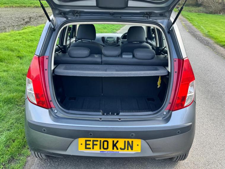 We are pleased to be presenting this 2010 Hyundai i10 1.2 Comfort Euro 4 5dr, finished in grey and having covered 44, 000 miles from new. This example has had 1 owner from new.It comes with a full service history and remains in superb condition inside and out.Running costs are low with ULEZ compliance, £20 annual road tax, and up to 60 MPG combined.Being the Comfort model, it comes equipped with air conditioning, electric front windows, central locking, CD/radio with AUX input, power steering and ISOFIX child seat points.As with all our vehicles, this Hyundai has been treated to a multi-stage valet using the best products Auto Glym have to offer. Every car we handle receives, at minimum, a service as part of our pre-sale preparation. Supplied with 12 months MOT without advisory, our complimentary 3-month warranty, 12 months free AA breakdown cover, and 2 keys.Please do not hesitate to get in touch via Text, Call or Email at any time to arrange a viewing and test drive. Viewing available by appointment only. To find out more about us, head to dealer's website Whilst every effort has been made to ensure the accuracy of the above information, sometimes errors may occur — please check with a salesperson..