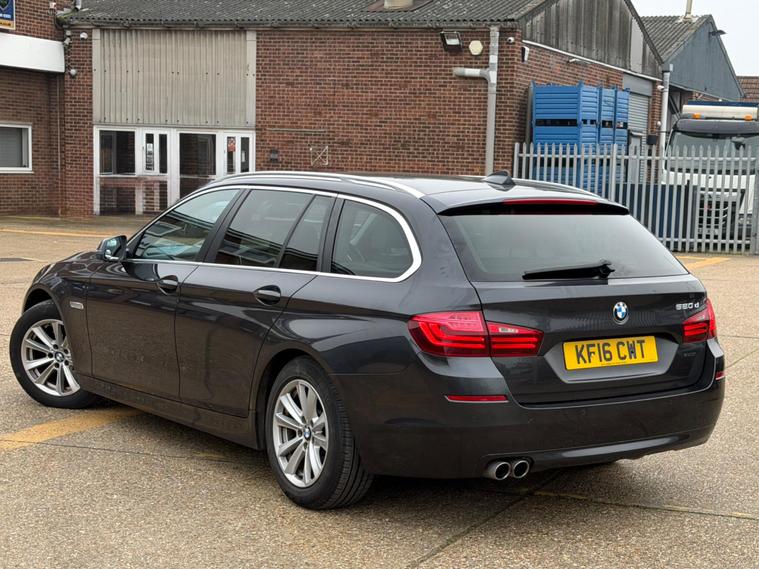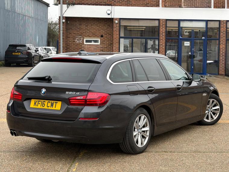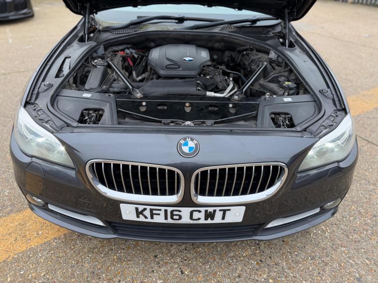 With only 90, 000 miles on the clock, this 2016 BMW 5 Series 520d SE represents excellent value, having been owned by just two careful keepers. This Euro 6 compliant model boasts a 2.0 litre diesel engine and comes in the well appointed SE trim. Notable features include an electric towbar, perfect for those who need to tow, and exterior trim finished in High Gloss Shadowline for a sleek look. You'll also find sun protection glazing for added privacy and comfort, front LED fog lights for improved visibility, and Bluetooth hands free facility for seamless connectivity on the go.This BMW 5 Series excels in several key areas, demonstrating its superiority over other vehicles in its class. Its impressive fuel economy of 63 mpg means fewer trips to the petrol station and more money in your pocket. The large boot space offers ample room for luggage or shopping, making it a practical choice for families and individuals alike. Furthermore, its low CO2 emissions contribute to a lower environmental impact. For those who appreciate performance, the 0-62mph acceleration in just 8.0 seconds ensures a responsive and engaging driving experience..