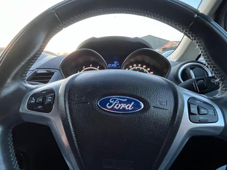 This 2013 Ford Fiesta T Titanium X presents a remarkable opportunity with only two owners and a low mileage of 71, 000 miles. This popular hatchback is equipped with a responsive 1.0L petrol engine and boasts the desirable Titanium X trim. Comfort is assured with Electronic Automatic Temperature Control for climate control and heated driver and passenger seats. Convenience features include automatic headlights and the Ford Keyfree System, allowing keyless entry and starting with the Ford Power Starter Button.Experience impressive efficiency with this Fiesta, achieving an outstanding 66 miles per gallon, which indicates it is more economical than many similar vehicles. Its low CO2 emissions further contribute to its cost effectiveness. For those who appreciate performance, this model accelerates from 0 to 62 miles per hour in just 9.4 seconds, demonstrating a strong balance between economy and driving enjoyment..