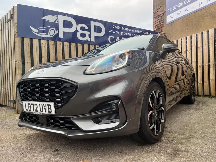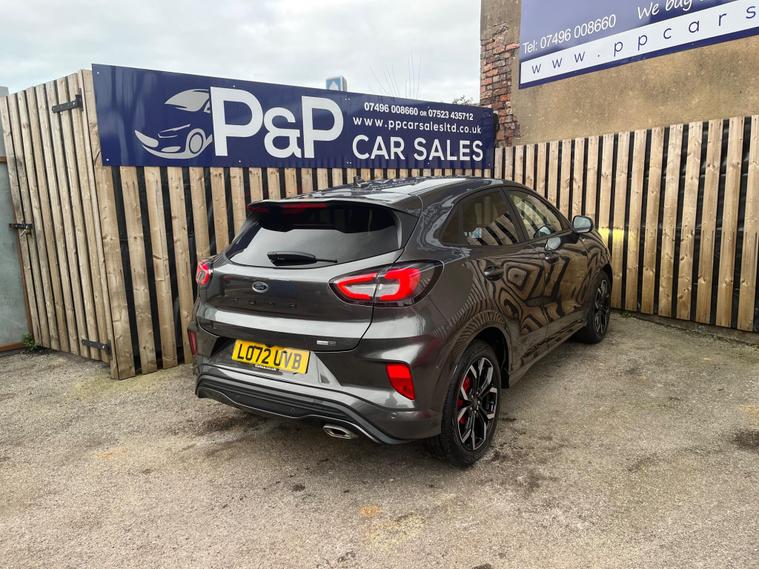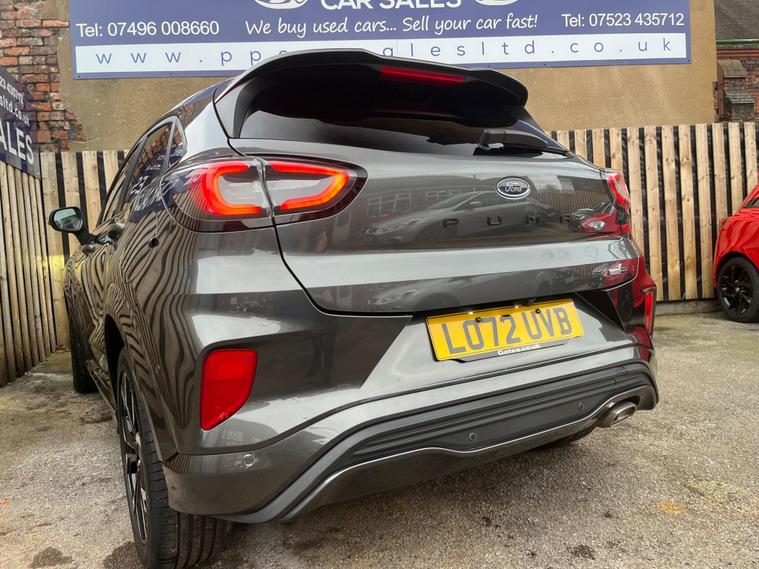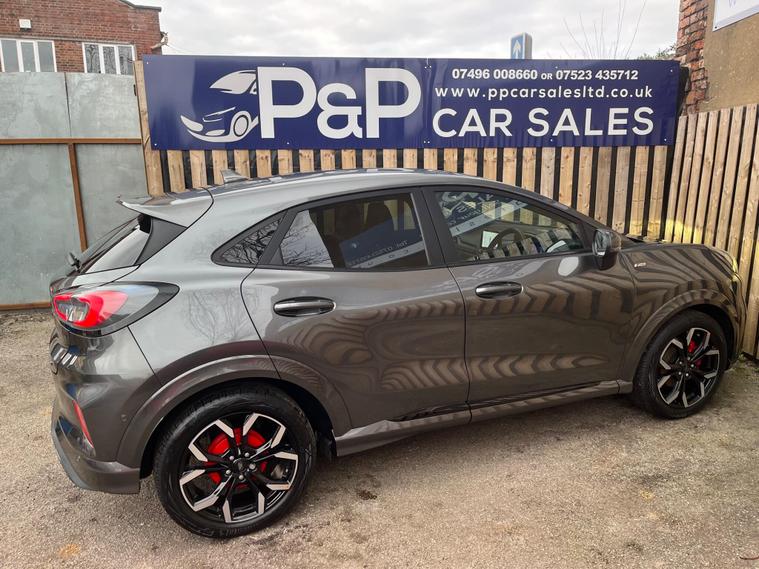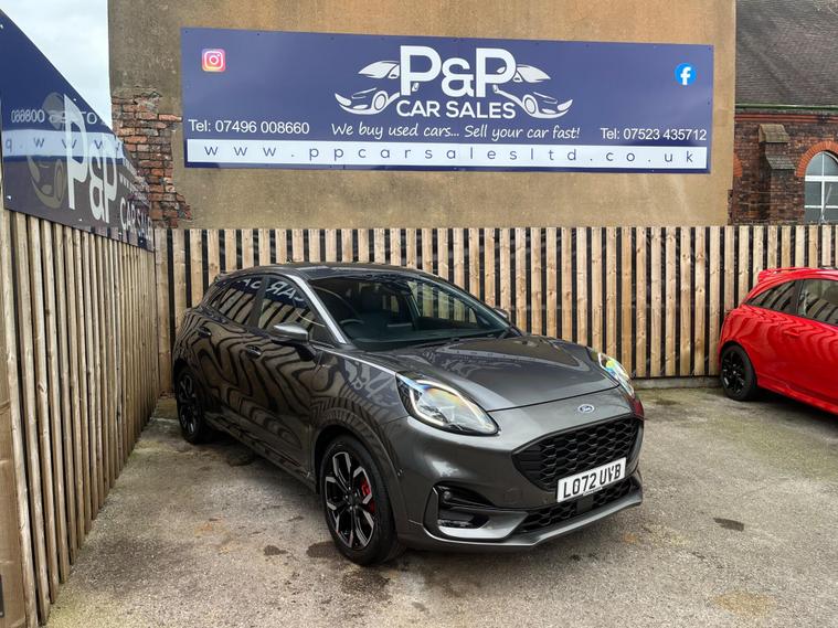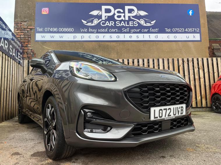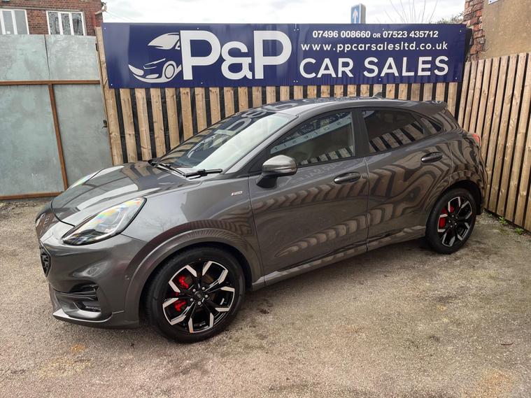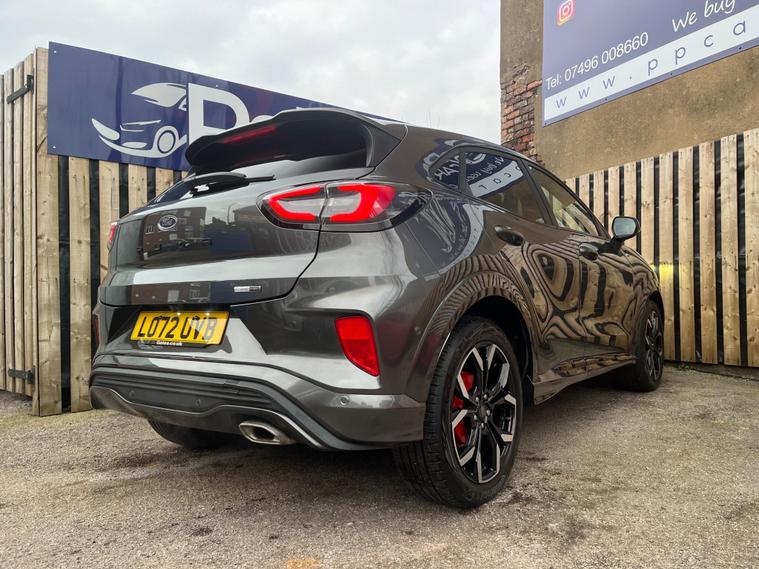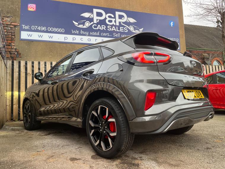 We have great pride in showing off to you this standout example of the Ford Puma. This stunning car comes with freshly painted colour complimenting callipers to extenuate the sleek and sporty design to which this amazing car posses. The callipers/drums are finished in the standout flame red to match the ST-Line's red stitching. This vehicle comes with a 12 months MOT certificate, 12 months AA breakdown cover, and has had a fresh first scheduled engine service for this listing. We offer 3 months warranty but urge you to explore our extended nationwide warranty options. Please speak to one of our lovely team to discuss the options at arms reach. This 2022 Ford Puma ST-Line X offers exceptional value with its remarkably low mileage of just 20340 miles, having been owned by only one careful keeper. This stylish compact SUV is powered by an efficient 1.0L Petrol Hybrid engine, meeting Euro 6 emission standards. It comes equipped with the desirable Parking Pack, featuring front and rear parking sensors along with a rear camera for effortless manoeuvring. The Winter Pack ensures comfort in colder months with heated seats and a heated steering wheel, complemented by Electronic Air Temperature Control for a pleasant cabin environment. Additionally, the Driver Assistance Pack includes automatic headlights, and the B&O Premium Audio System with Ford SYNC 3 Navigation provides an immersive entertainment and navigation experience, complete with Android Auto, Apple CarPlay, and Bluetooth connectivity.The Ford Puma ST-Line X stands out with its impressive fuel economy, achieving a notable 52 miles per gallon, which is excellent for a vehicle of its type and indicates lower running costs compared to many others. Its low CO2 emissions further contribute to its appeal, making it a more environmentally conscious choice. This particular example, with its single owner and low mileage, represents a superb opportunity to acquire a well appointed and modern Ford Puma that combines practicality with a sporty ST-Line X design..