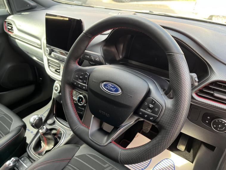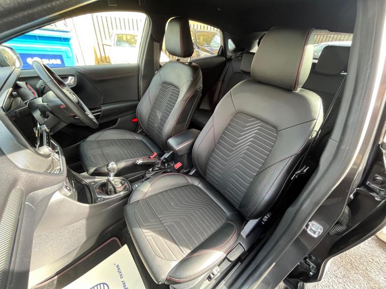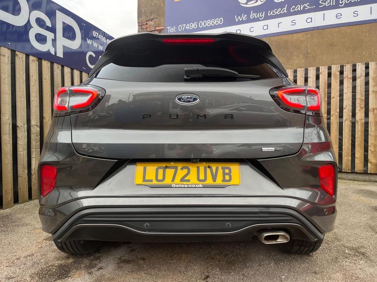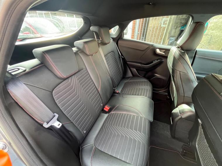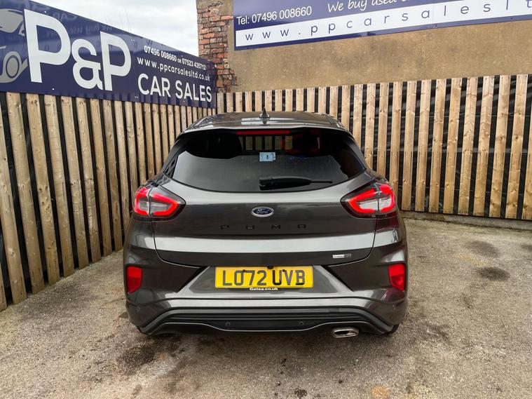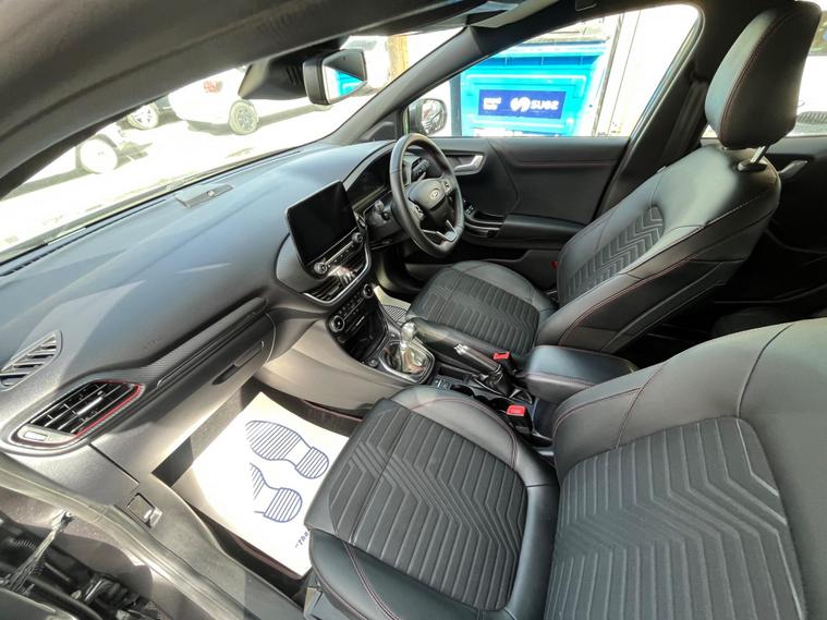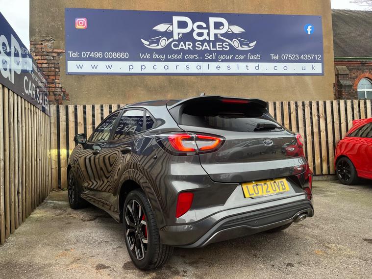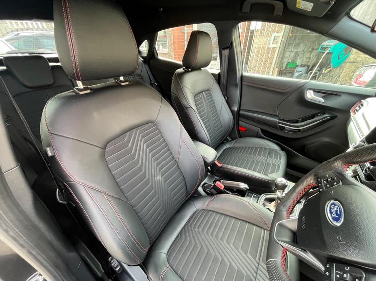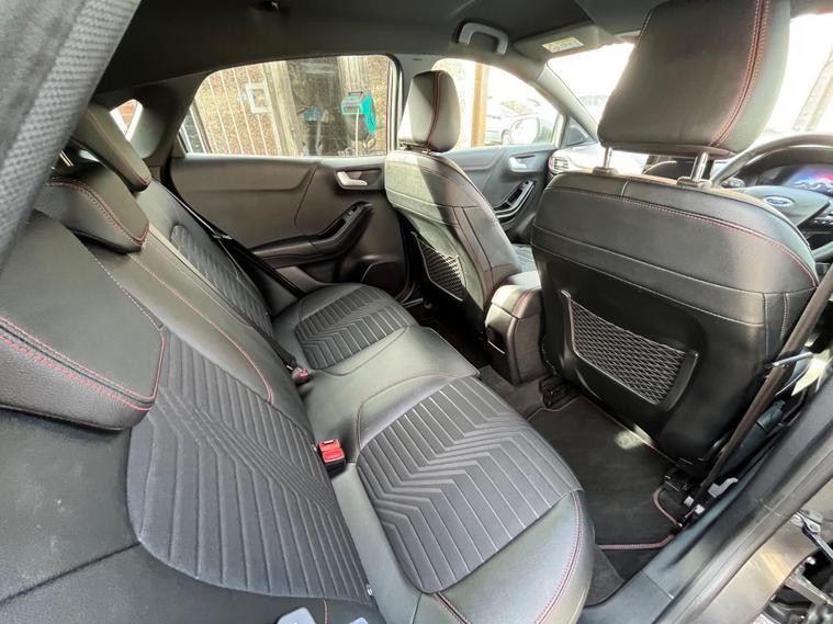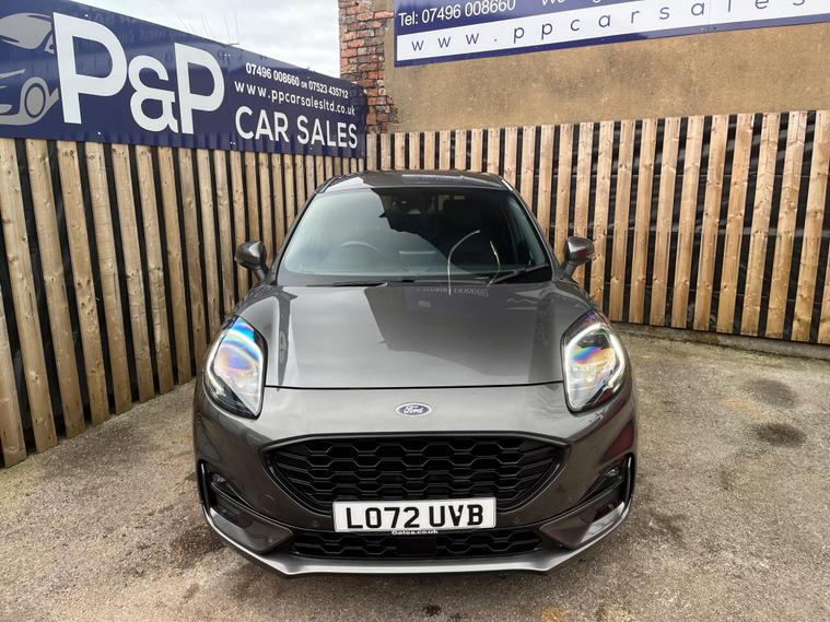 We have great pride in showing off to you this standout example of the Ford Puma. This stunning car comes with freshly painted colour complimenting callipers to extenuate the sleek and sporty design to which this amazing car posses. The callipers/drums are finished in the standout flame red to match the ST-Line's red stitching. This vehicle comes with a 12 months MOT certificate, 12 months AA breakdown cover, and has had a fresh first scheduled engine service for this listing. We offer 3 months warranty but urge you to explore our extended nationwide warranty options. Please speak to one of our lovely team to discuss the options at arms reach. This 2022 Ford Puma ST-Line X offers exceptional value with its remarkably low mileage of just 20340 miles, having been owned by only one careful keeper. This stylish compact SUV is powered by an efficient 1.0L Petrol Hybrid engine, meeting Euro 6 emission standards. It comes equipped with the desirable Parking Pack, featuring front and rear parking sensors along with a rear camera for effortless manoeuvring. The Winter Pack ensures comfort in colder months with heated seats and a heated steering wheel, complemented by Electronic Air Temperature Control for a pleasant cabin environment. Additionally, the Driver Assistance Pack includes automatic headlights, and the B&O Premium Audio System with Ford SYNC 3 Navigation provides an immersive entertainment and navigation experience, complete with Android Auto, Apple CarPlay, and Bluetooth connectivity.The Ford Puma ST-Line X stands out with its impressive fuel economy, achieving a notable 52 miles per gallon, which is excellent for a vehicle of its type and indicates lower running costs compared to many others. Its low CO2 emissions further contribute to its appeal, making it a more environmentally conscious choice. This particular example, with its single owner and low mileage, represents a superb opportunity to acquire a well appointed and modern Ford Puma that combines practicality with a sporty ST-Line X design..