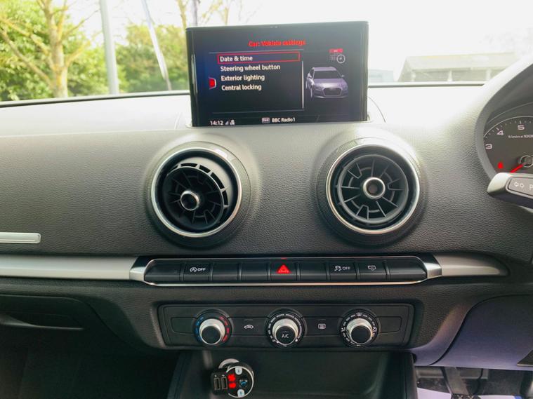 01 FORMER KEEPER, FULL SERVICE HISTORY , LAST SERVICE DONE @ 92577 , MOT TILL 23 January 2027, This 2019 Audi A3 TFSI SE Technik boasts a clear vehicle history check, offering you peace of mind. This Euro 6 compliant model features a 1.0 litre petrol engine and comes with MOT valid until January 2027. Inside, you'll find manual air conditioning, a Bluetooth interface for seamless connectivity, and an auto dimming rear view mirror that activates with the light and rain sensor. The Xenon headlights with LED daytime running lights ensure excellent visibility, complemented by rear parking sensors to assist with manoeuvring.The Audi A3 TFSI SE Technik offers a compelling blend of efficiency and practicality. Its low CO2 emissions make it an environmentally conscious choice, while the generous boot space provides ample room for your luggage or shopping. Demonstrating its capable performance, this A3 can accelerate from 0 to 62mph in 9.9 seconds, indicating a responsive driving experience compared to other vehicles in its class..