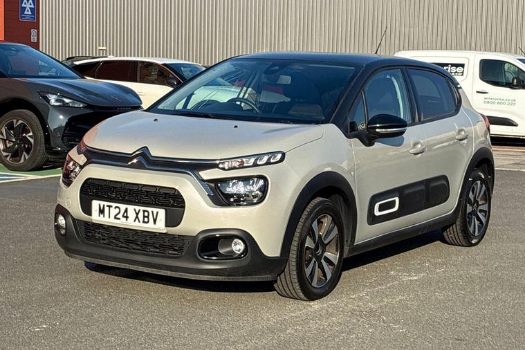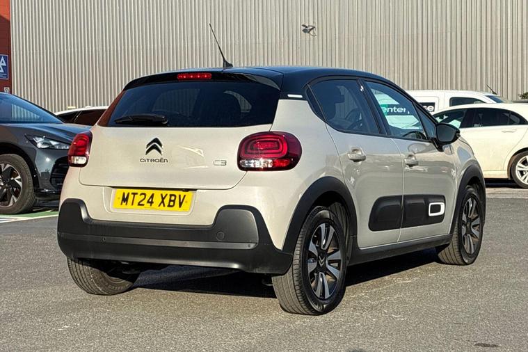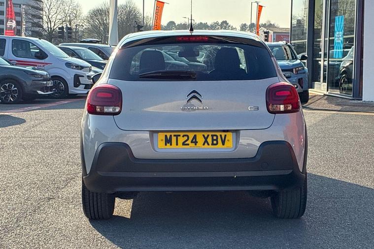 This 2024 Citroen C3 PLUS is a Citroen manufacturer approved vehicle with a full service history and only one owner from new, offering excellent peace of mind. This Euro 6 compliant 1.2 litre petrol model comes with a 12 month warranty, ensuring your continued confidence. It features a reversing camera with rear parking assistance, LED headlights for improved visibility, and rear parking sensors to aid manoeuvring. Inside, you will find automatic air conditioning for a comfortable cabin temperature and a visibility pack that includes automatic headlights.The Citroen C3 PLUS offers a compelling driving experience, highlighted by its brisk 0-62mph acceleration time of just 10.1 seconds, demonstrating its responsiveness compared to other vehicles in its class. Furthermore, its low insurance group rating means that running costs are kept to a minimum, making it an economical choice for many drivers..