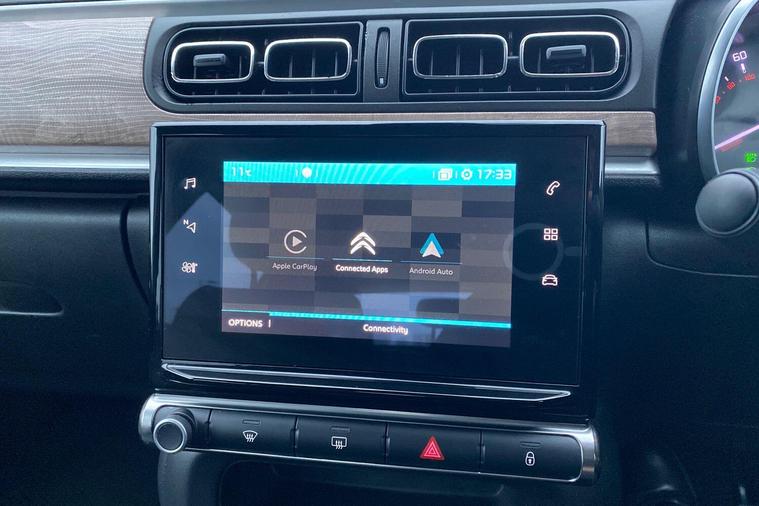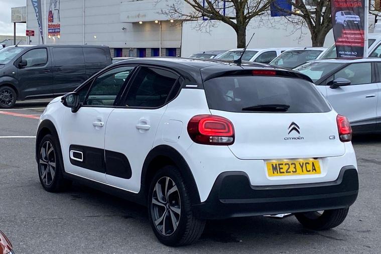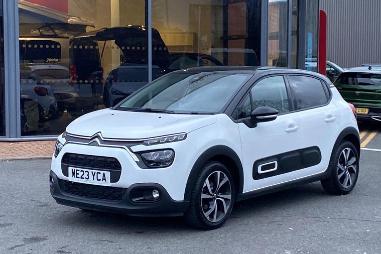 This 2023 Citroen C3 Shine Plus is a Citroen manufacturer approved vehicle with a full service history and only one owner from new, offering excellent peace of mind. This stylish hatchback is equipped with a responsive 1.2L petrol engine and meets Euro 6 emission standards. Inside, you'll find automatic air conditioning for a comfortable cabin temperature, and the Citroen Connect Nav system which includes Android Auto and Apple CarPlay for seamless smartphone integration, alongside Bluetooth connectivity. For enhanced visibility and convenience, it features LED headlights and a reversing camera, complemented by the Visibility Pack which includes automatic headlights.The Citroen C3 Shine Plus offers impressive performance and efficiency, achieving 0 to 62mph in just 9.4 seconds. Its fuel economy is a notable highlight, reaching up to 55 miles per gallon, and it also boasts low CO2 emissions, indicating its environmental consideration compared to other vehicles. This particular example comes with a 12 month warranty, further assuring you of its quality and reliability..