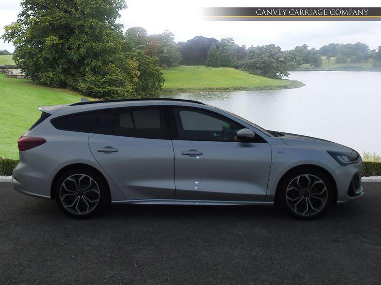 This 2022 Ford Focus ST-Line Vignale offers exceptional provenance, having been owned by just one careful owner and boasting a clear vehicle history check. Under the bonnet, you'll find an efficient 1.0 litre petrol hybrid engine, meeting Euro 6 emission standards. This ST-Line Vignale model comes equipped with a range of desirable features, including wireless phone charging, dual zone electronic automatic climate control for personalised comfort, and a winter pack that provides heated seats and a heated steering wheel. Automatic headlights and front and rear parking sensors further enhance convenience and safety.The Ford Focus ST-Line Vignale also impresses with its practical large boot space, making it ideal for everyday use and longer journeys. Its performance is equally noteworthy, with an acceleration of 0-62mph achieved in a swift 8.6 seconds. These highlights demonstrate how this particular Focus offers a superior driving experience and enhanced functionality compared to other vehicles in its class..