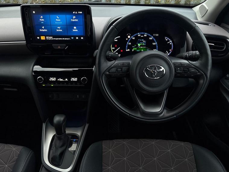 This 2022 Toyota Yaris Cross VVT-h Excel is a Toyota manufacturer approved vehicle with only one owner and a low mileage of just 19, 384 miles, offering excellent peace of mind with 12 months warranty and an MOT valid until October 2026. It boasts a full service history, with the last service completed on 11 October 2025 at 17, 725 miles. This Euro 6 compliant model features a 1.5L Petrol Hybrid engine and comes equipped with the desirable Tech Pack, including Android Auto and Apple CarPlay, alongside the Advanced Safety Pack which incorporates Blind Spot Assistance and front and rear parking sensors with clearance sonar and automatic braking. The Excel trim also benefits from LED projector headlights for enhanced visibility.The Toyota Yaris Cross VVT-h Excel stands out with its impressive fuel economy of 57 mpg, making it an economical choice for your journeys. Its low CO2 emissions and low insurance group further highlight its cost effectiveness compared to similar vehicles. This well maintained and feature packed hybrid SUV offers a refined driving experience and advanced technology, making it a compelling option for those seeking efficiency and practicality..
