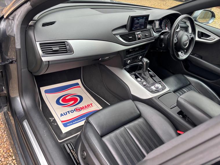 ALL VIEWINGS STRICTLY BY APPOINTMENT ONLY, FINANCE PX AND DELIVERY AVAILABLE, EXCELLENT EXAMPLE COVERD A GENUINE 64, 000 MILES WITH FULL SERVICE HISTORY, 2 KEYS, MOT MARCH 2027, COMES WITH 6 MONTHS NATIONWIDE WARRANTY AND 12 MONTHS AA BREAKDOWN COVER, ULEZ COMPLIANT, DRIVES LIKE NEW, SATNAV, HEATED LEATHER, AUTO CLOSE BOOT, BUY WITH CONFIDENCE READ OUR CUSTOMERS DEALER REVIEWS, UNDER COVER INDOOR SHOWROOM VIEWING, FULL DEALER FACILITIES, OPEN 7 DAYS BY APPOINTMENT ONLY.This 2016 Audi A7 TDI V6 S line presents a remarkable opportunity with its exceptionally low mileage of just 64, 000 miles for its age, coupled with a full service history and only two previous owners. This Euro 6 compliant 3.0 litre diesel engine is presented in the sought after S line trim, offering a refined driving experience. You will benefit from a 6 month warranty and a 12 month MOT provided on purchase, ensuring peace of mind. Notable features include Electronic Deluxe 4-Zone Climate Control, heated front seats, and electrically adjustable front seats with a memory function for the driver. Parking is made easier with acoustic and visual parking assistance for the front of the vehicle.The performance of this Audi A7 is impressive, achieving 0-60mph in just 7.0 seconds, demonstrating its powerful 3.0 litre diesel engine. This acceleration figure indicates a more dynamic driving experience compared to many similar vehicles. Furthermore, its low insurance group rating suggests that running costs could be more economical. The generous boot space offers practicality for everyday use and longer journeys, making this A7 a well rounded choice that excels in several key areas..