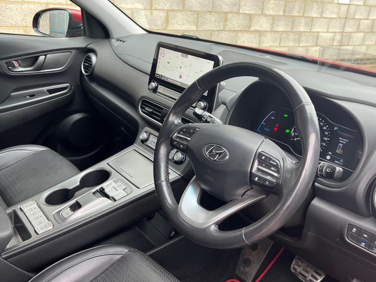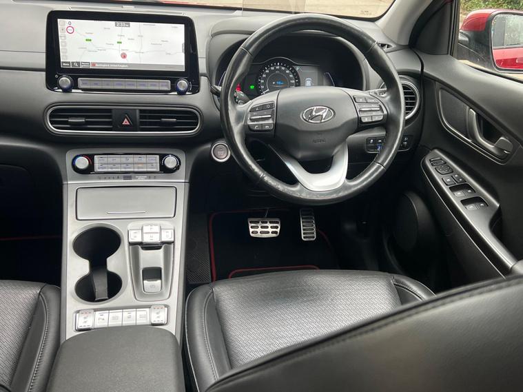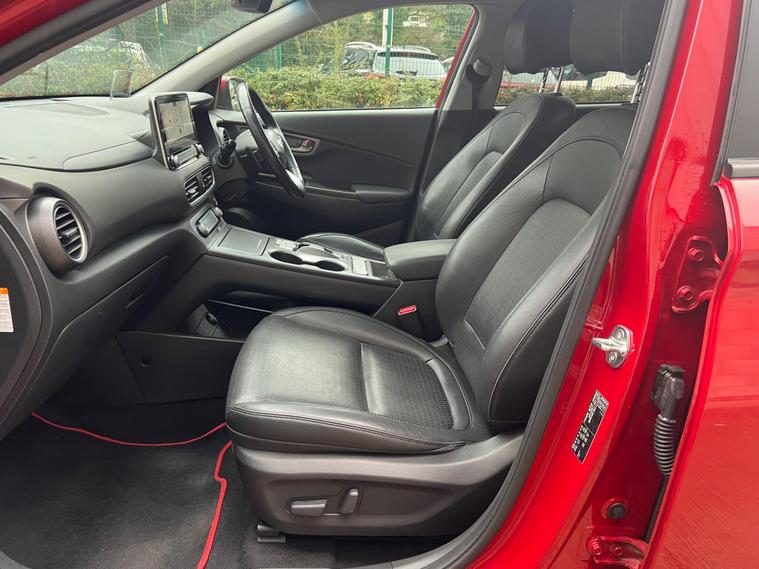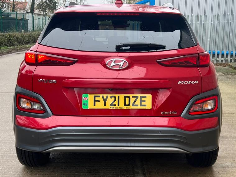 TWO KEYS, LONG MOT , EXCELLENT CONDITION INSIDE AND OUTSIDE DRIVES SUPERB LIKE NEW A GRADE BATTERY CONDITION REPORT IN PICTURES, LOVELY COLOUR COMBINATION FULL LEATHER IN VERY GOOD SHAPE REGEN ELECTRIC SYSTEM AS WELLThis 2021 Hyundai KONA Premium SE is a clear vehicle history example, offering a substantial electric driving experience. As an electric model, it boasts a 68 kWh battery, providing a maximum range of 279 miles when new. Charging at home with a 7kW charger takes approximately 9 hours and 35 minutes for a full charge, while rapid public charging can take it from empty to 80% in just 53 minutes. This Premium SE trim comes equipped with Climate Control featuring an automatic de fog system for the front windscreen, a rear camera and guidance system for parking assistance, and heated front seats for added comfort. It also includes Smart Adaptive Cruise Control with a stop and go function, and Android Auto for seamless phone connectivity.The Hyundai KONA Premium SE stands out with its impressive electric capabilities. The highlighted 279 mile maximum range when new indicates its strong performance compared to other electric vehicles in its class. This extended range, combined with the convenient charging times, makes it a practical choice for both daily commutes and longer journeys. The inclusion of advanced features like adaptive cruise control and a rear parking camera further enhances the driving experience, offering both convenience and safety. COMES WITH WARRANTY. PX WELL COME. FINANCE AVAILABLE.