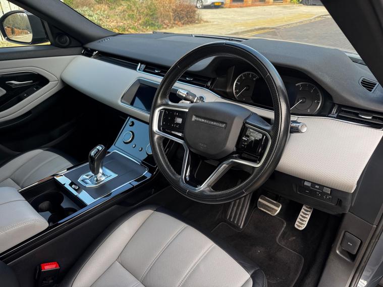 One Owner with Full Land Rover Service History, Panoramic Opening Roof, Wireless Apple Carplay, This 2021 Range Rover Evoque D200 R Dynamic S has been cherished by just one owner since new. This stylish compact SUV features a powerful 2.0L diesel engine paired with a capable Four Wheel Drive system, meeting Euro 6 emissions standards. The R Dynamic S trim enhances its appeal with a striking Sliding Panoramic Roof complete with a powered blind, allowing you to enjoy an open air feel. Further enhancing its sophisticated look are 20 inch Gloss Black alloy wheels and eye catching Red Painted Brake Calipers.Inside, you will appreciate the Premium Cabin Lighting that creates a welcoming atmosphere. Parking is made effortless thanks to the advanced 3D Surround Camera system, offering a 360 degree view and front and rear parking sensors. This Evoque delivers impressive performance, achieving 0 to 60mph in just 7.9 seconds, demonstrating its agility. Furthermore, its fuel economy is a notable highlight, achieving an excellent 43 miles per gallon, which indicates its efficiency compared to similar vehicles, Finance Available, Walk Around Video on Request, AA Approved Dealer, Drive Away Insurance..