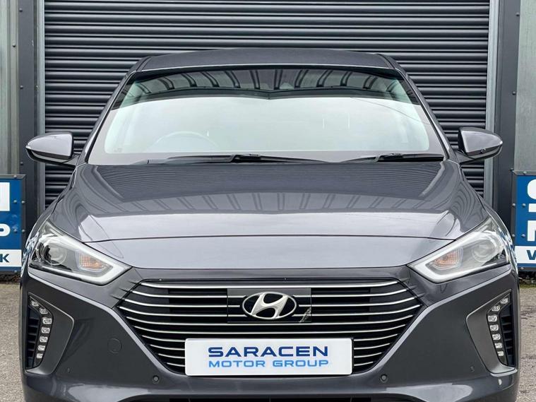 HYUNDAI IONIQ 1.6 Premium SE FHEV Semi-Auto 5dr Euro 6 ULEZ FREE. Finished in Iron Grey with Ebony leather interior.15'' alloy wheels with efficiency hubs, Bluetooth, 7'' instrument cluster, Infinity premium sound system, Apple CarPlay/ Android Auto, DAB radio, wireless charging pad, 8'' touchscreen, blind spot monitoring, adaptive cruise control, lane departure warning/ lane assist, front and rear parking sensors, rear view camera, electric folding door mirrors, electric rear windows, heated rear screen, automatic headlights, LED DRL's, air conditioning, dual zone climate control, heated front seats, ventilated front seats, heated steering wheel, heated rear seats, leather wrapped multi function steering wheel, variable drive modes. Here at Saracen Motor Group we have been awarded AA Platinum dealership recognition along with being nominated for best customer service by Autotrader for 2021, 2022, 2023, 2024 & 2025. We are a 5-star dealership with over 600 5-star reviews across all internet platforms including Autotrader and have been regarded as one of the best dealerships to buy from in the UK.Our preparation team inspects each vehicle to the highest level possible for its age and mileage. You can rest assured your next car has been cared for to the highest standard. Service history, V5 and the HPI certificate will all be present on viewing and collection. With our location based in Battlesbridge, Essex you can enjoy a haggle-free buying experience where you can drive away the same day if prior arranged, additional fees apply please see our website for details..
