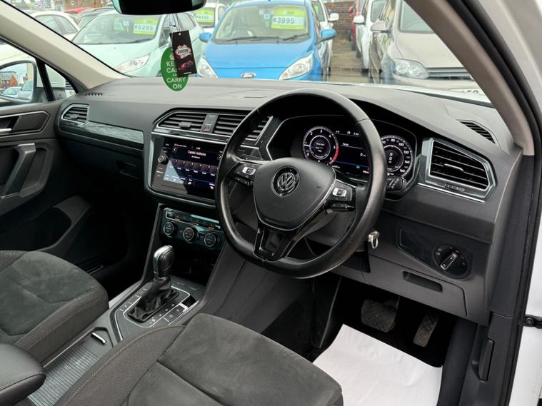 This 2018 Volkswagen Tiguan TDI SEL offers a compelling blend of efficiency and advanced technology, making it a standout choice. Powered by a 2.0 litre Euro 6 diesel engine, this model boasts impressive fuel economy and low CO2 emissions. The SEL trim level ensures a premium experience, featuring LED headlights with Dynamic Light Assist for optimal visibility. For effortless parking, it includes Park Assist with a rear view camera and front and rear parking sensors. Inside, you'll find a 14 way adjustable driver ergoComfort seat with memory function and voice activation for seamless control of various functions. The Tyre Pressure Monitoring System adds an extra layer of safety.The generous boot space of this Tiguan TDI SEL provides ample room for all your needs, whether for daily errands or longer journeys. Its Euro 6 compliant engine contributes to lower running costs and environmental impact, while also placing it in a favourable low insurance group, indicating it is more economical to own than many comparable vehicles. The combination of its practical features, efficient powertrain, and advanced driver aids makes this 2018 Volkswagen Tiguan TDI SEL a well rounded and attractive option..