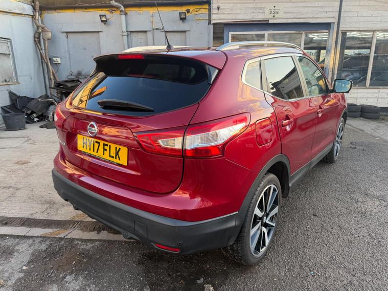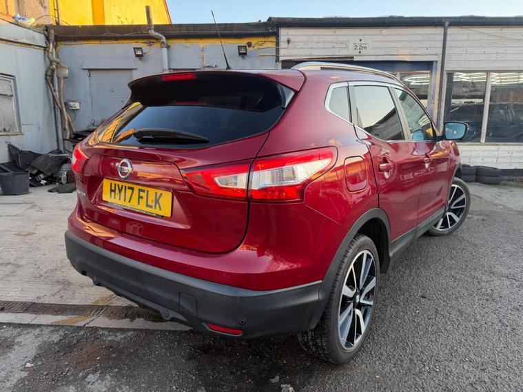 This 2017 Nissan Qashqai DIG-T Tekna boasts a single owner and remarkably low mileage for its age, having covered just 49, 000 miles. This Euro 6 compliant 1.2 litre petrol model comes with a clear vehicle history check and a full service history, ensuring peace of mind. You'll also benefit from 12 months MOT provided on purchase and a 3 month warranty. Notable features include a panoramic sunroof with a one touch shade, keyless entry with intelligent key, and Bi-LED headlights, all designed to enhance your driving experience.The Qashqai Tekna offers excellent fuel economy, achieving an impressive 49 miles per gallon, which is better than many similar vehicles. Its low CO2 emissions and low insurance group further highlight its cost effectiveness. This well maintained vehicle represents a sensible choice for those seeking a reliable and economical SUV..