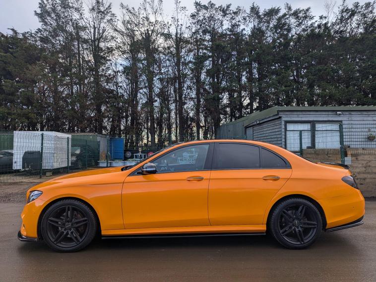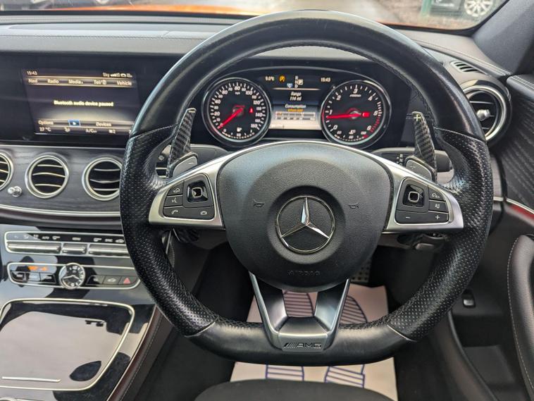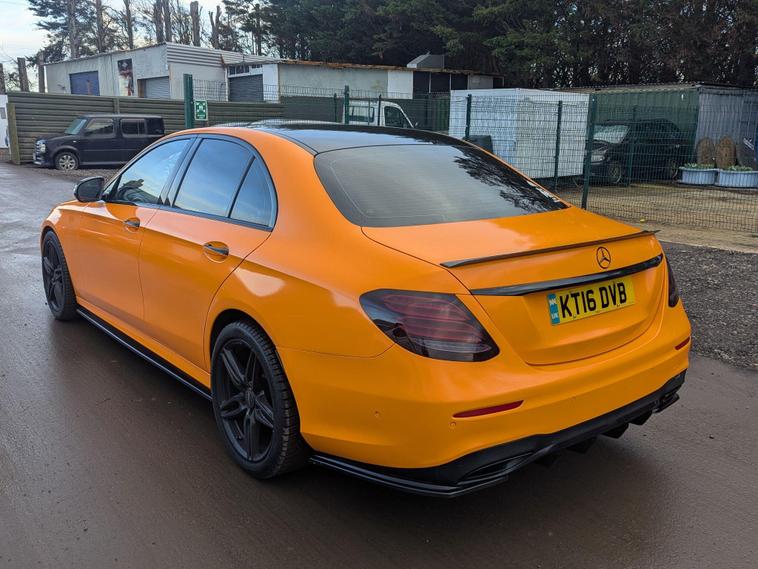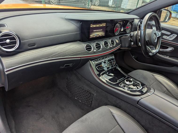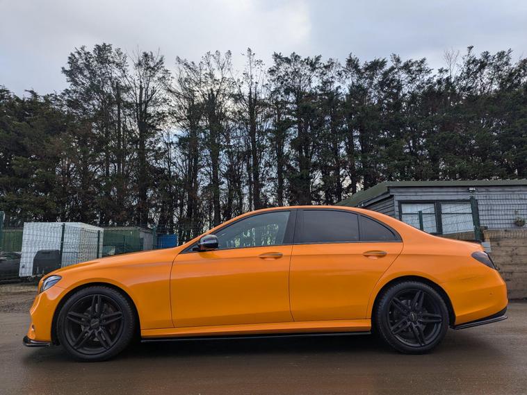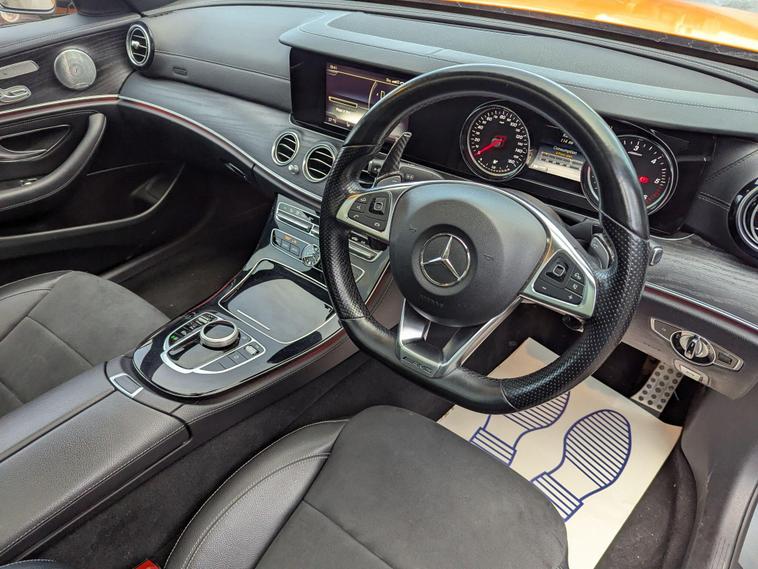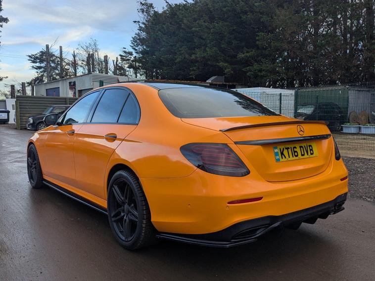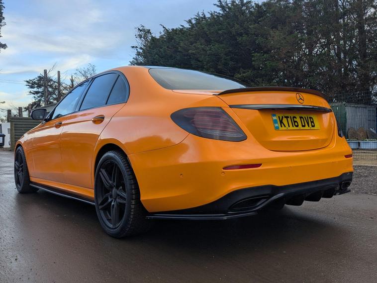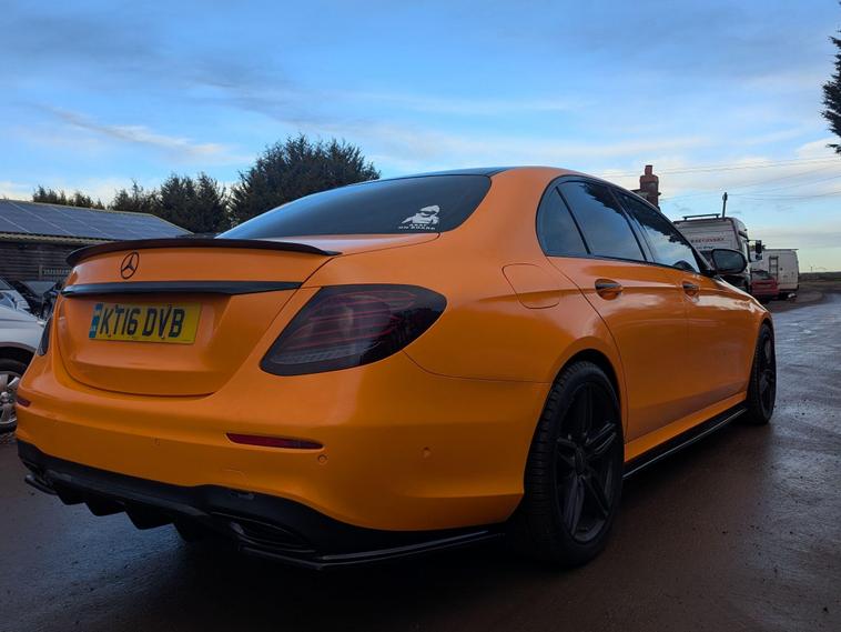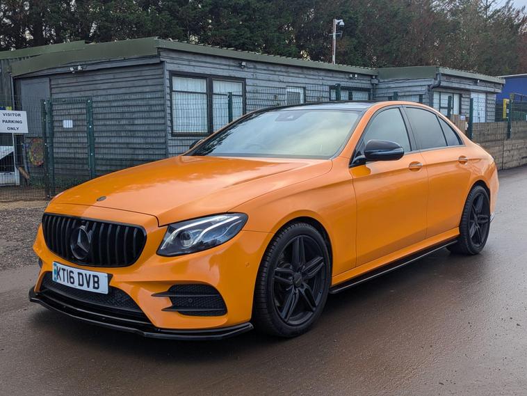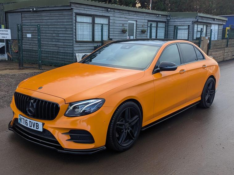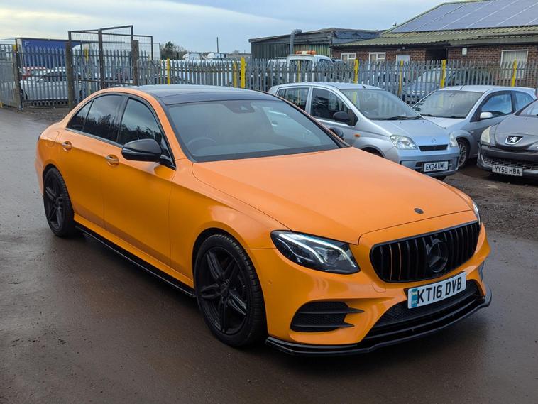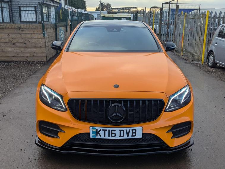 HPI CLEAR, FULL SERVICE HISTORY, RECENT SERVICE WITH INVOICES, GREAT RUNNER, 3 MONTHS WARRANTY , 2 PREVIOUS KEEPERS, LONG MOT, FULL BLUE TOOTH SUPPORT FOR MUSIC PLAY AND PHONE CALLS, REVERSE CAMERA AND 360 ALL AROUD WITH PARKING SENSORS, ORANGE WRAP DONE ON THIS VEHICLE IN A VERY QUALITY WORK AND THIS VEHICLE IS ONE OF A KIND, THIS VEHICLE IS FULLY LOADED AND SPORTLESS AND WITHOUT ANY FAULTS AND DRIVES LIKE BRAND NEW, COLOUR CHANGE TO ORANGE WITH WRAP WITH PROFFESSIONAL WORK, IF YOU HAVE AN OLD CAR OR A PART EXCHANGE VEHICLE AND YOU WANT TO TRADE IT IN YOU ARE MORE THAN WELCOME TO DO SO AS WE WILL GIVE YOU A VERY FAIR DEAL, This 2016 Mercedes Benz E220d AMG Line (Premium Plus) presents an exceptional opportunity with a remarkably low mileage of just 45, 000 miles for its age. As a Euro 6 compliant model, it features a 2.0L diesel engine and comes equipped with the desirable AMG Line trim. This particular example boasts a host of premium features, including a captivating Panoramic Glass Sunroof, the immersive Burmester Surround Sound System, and advanced Multibeam LED Intelligent Light System headlights. Comfort is further enhanced by heated front seats and the convenience of the Keyless Go Comfort Package, allowing for effortless entry and starting.The E220d AMG Line (Premium Plus) excels in several key areas, demonstrating its superiority over comparable vehicles. Its impressive fuel economy of 66 mpg means fewer stops at the petrol station, while its low CO2 emissions are beneficial for both the environment and potential running costs. You'll also appreciate the generous boot space, offering ample room for luggage or shopping. Performance is equally strong, with a brisk 0-62mph acceleration time of just 7.3 seconds, ensuring a responsive and engaging driving experience.For more information and booking a viewing and test drive please call us on the numbers shown or email us and we will look forward to get back to you and also we look forward to see you at our dealership..