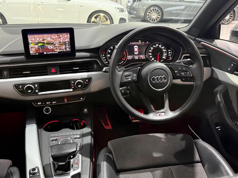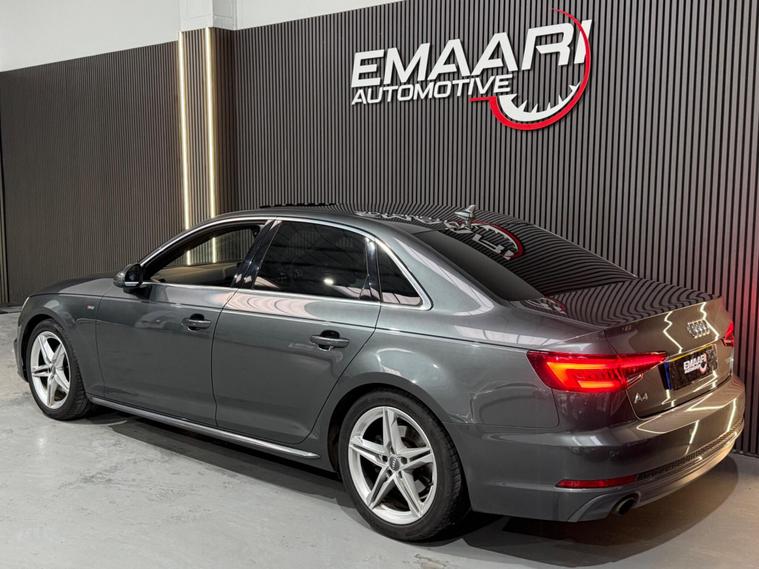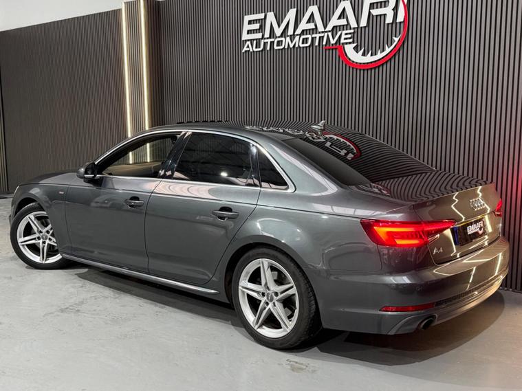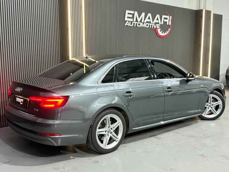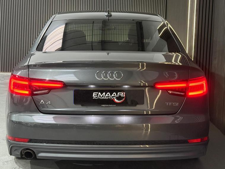 This 2018 Audi A4 TFSI S line is a superb example, having been owned by only one person since new. This premium saloon features a 1.4 litre petrol engine and meets Euro 6 emissions standards. It comes equipped with the desirable Comfort and Sound Package, which includes keyless entry, a luxury branded sound system, and parking assistance with a rear camera. Further enhancing its appeal are the striking Matrix LED headlights with dynamic front and rear indicators, complemented by LED rear lights. The electric slide and tilt sunroof adds an open and airy feel, while the Storage Package provides practical solutions for keeping the cabin organised.This Audi A4 TFSI S line offers excellent running costs, highlighted by an impressive fuel economy of 51 miles per gallon. Its low CO2 emissions and low insurance group rating further indicate that this vehicle is a more economical choice compared to similar models. These factors combine to make it an attractive and sensible option for any discerning driver..