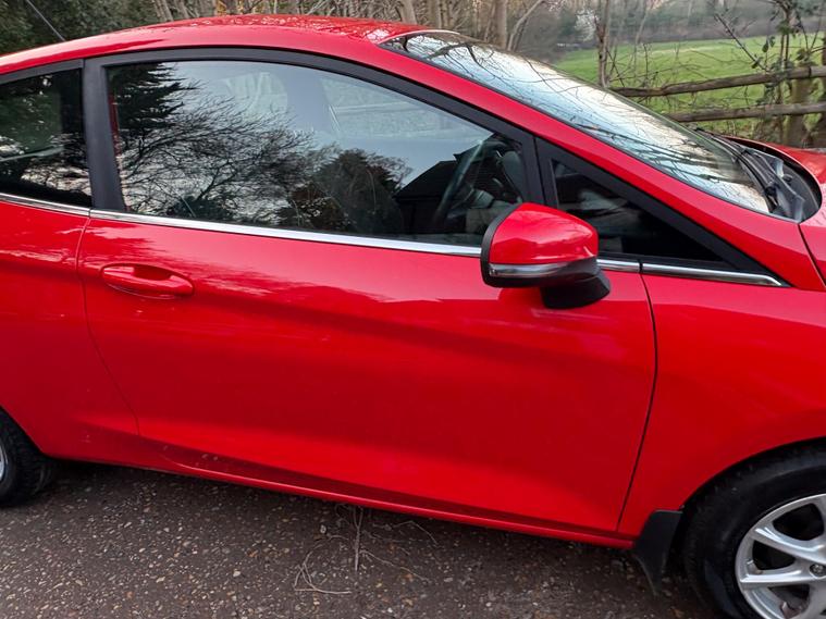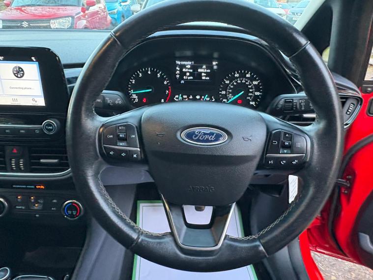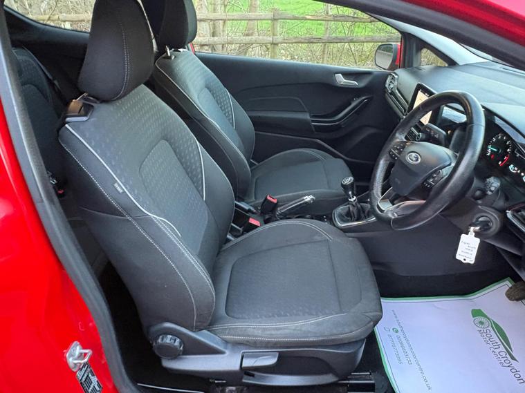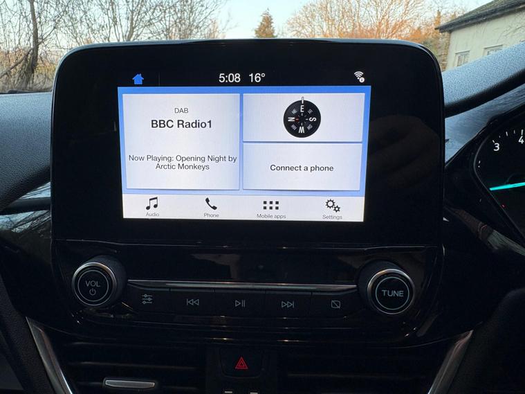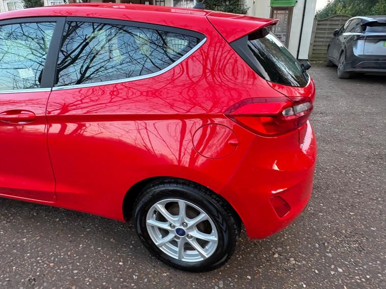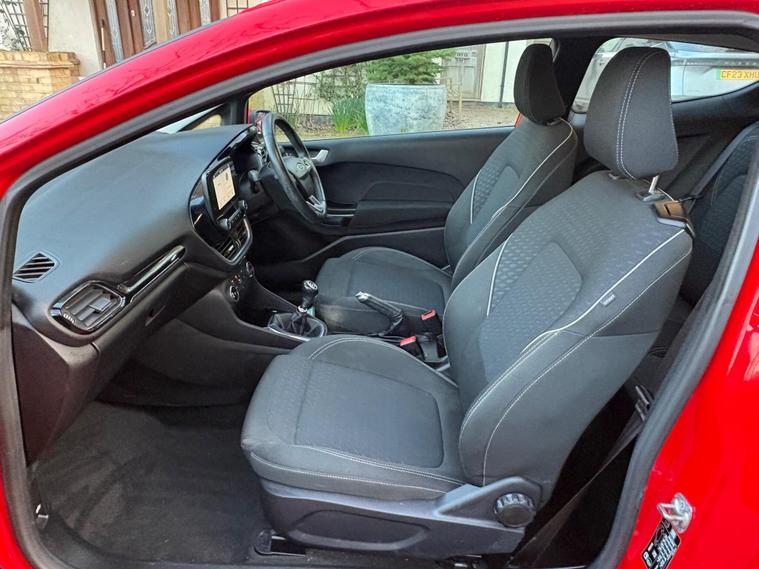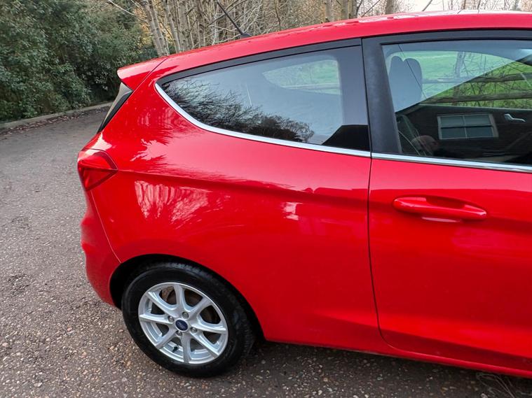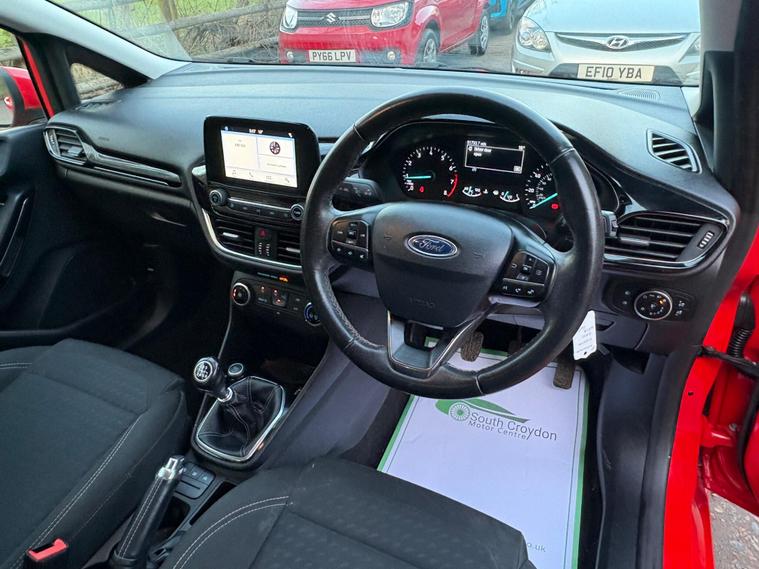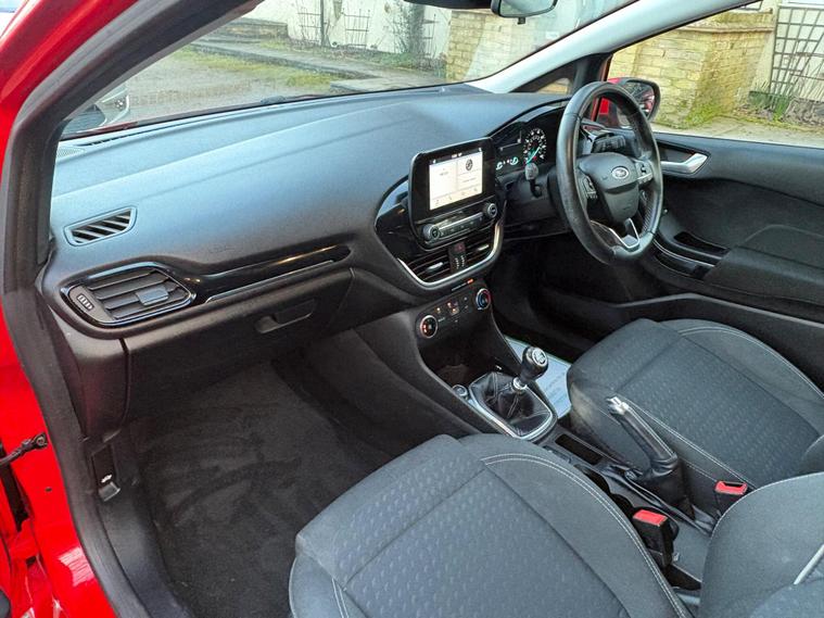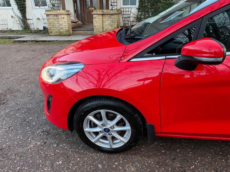 This 2018 Ford Fiesta Zetec T has been cherished by only two owners, offering a well maintained example of this popular model. Powered by an efficient 1.0 litre petrol engine, this Euro 6 compliant vehicle combines practicality with modern technology. Inside, you'll find the Ford DAB Radio featuring Ford SYNC3, which seamlessly integrates with both Apple CarPlay and Android Auto, keeping you connected on the go. Comfort is assured with manual air conditioning, and for added convenience, the headlights are automatic, switching on and off as needed, a feature also included as part of the NCAP Pack for enhanced safety.Experience impressive fuel economy with this Fiesta, achieving an outstanding 60 miles per gallon, which is significantly better than many other vehicles in its class. Its low CO2 emissions also contribute to its economical running costs. Furthermore, its acceleration from 0 to 62 miles per hour in just 10.6 seconds demonstrates a responsive and enjoyable driving experience, making it a well rounded choice for everyday journeys..