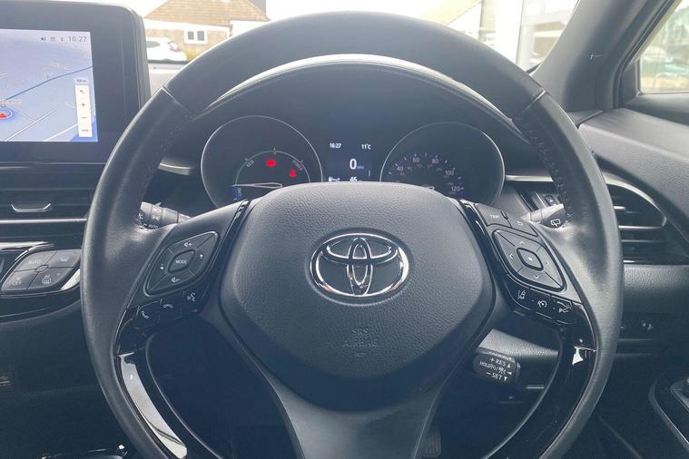 This 2023 Toyota C-HR VVT-h Design is a truly exceptional example, boasting a single owner from new and an incredibly low mileage of just 13, 636 miles, all backed by a full service history and 12 months warranty. As a Toyota manufacturer approved vehicle, you can be assured of its quality and condition. This stylish C-HR features a responsive 1.8L petrol hybrid engine, meeting Euro 6 emissions standards, and comes equipped with a suite of intelligent features. Navigate with ease using the reversing camera and parking assistance, while adaptive cruise control enhances your driving comfort. The 8in HD Toyota Smart Connect multimedia system with wireless phone charging keeps you connected and entertained, complemented by front and rear parking sensors and automatic headlights for added convenience and safety.The highlights of this Toyota C-HR truly set it apart, demonstrating its superior value compared to other vehicles in its class. Its impressive fuel economy of 58 mpg means fewer trips to the petrol station, while its low insurance group offers significant savings on running costs. Furthermore, its low CO2 emissions contribute to a more environmentally friendly drive. This combination of efficiency, affordability, and advanced technology makes this C-HR a smart and appealing choice for any discerning driver..