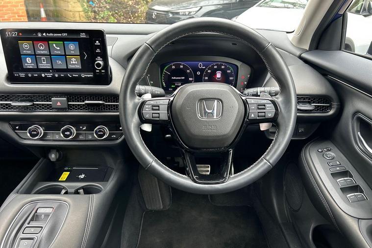 This 2023 Honda ZR-V h i-MMD Sport is a Honda manufacturer approved vehicle, offering peace of mind with a 12 month warranty and 12 months MOT provided on purchase. This Euro 6 compliant model boasts a full service history, with its last service completed on 2025-08-28 at 17997 miles. The Sport trim features a responsive 2.0L Petrol Hybrid Engine, and comes equipped with a rear view camera for easier parking, LED headlights for improved visibility, and adaptive cruise control for a more relaxed driving experience. Inside, you'll find convenient wireless charging and wireless Apple CarPlay integration.The performance of this Honda ZR-V is noteworthy, achieving 0-62mph in just 7.9 seconds, demonstrating its dynamic capability. These highlights, combined with its advanced features such as the rear view camera, LED headlights, adaptive cruise control, wireless charging, and wireless Apple CarPlay, position this vehicle as a superior choice compared to other similar models on the market..