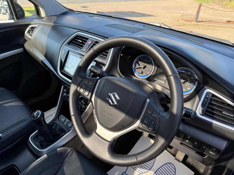 Chartwell's are pleased to offer this stunning Suzuki SX4 S-Cross 1.6 SZ5 for sale. The car comes complete with a full service history including a fully stamped service book (As shown in photos). The last service was completed on 19/02/2026 at 77, 710 miles. These very reliable chain driven cars have no cambelt change to worry about. The current MOT runs until 18/02/2026 passing with 0 advisories . Drives superb. This car is in excellent condition throughout. Finished in a lovely metallic blue this very high spec car offers someone excellent value. With the low ownership, nice mileage, fantastic history and great mpg it's sure to go fast. Clearly a very well cared for car. Mega spec includes the Metallic paint, 17'' Alloys, Electric glass sunroof, Full Leather, Heated seats, height adjustable front seats, Auto lights, LED running lights, Reverse Camera, Front + Rear parking sensors, Steering wheel controls, Cruise control, Keyless Start, Keyless Entry, Remote locking, Factory Satellite navigation, Bluetooth mobile phone connectivity, DAB Radio - CD Player -USB - AUX , Dual climate control, Air conditioning, Electric windows, Electric heated mirrors, and much much more. We have the full book pack with a fully stamped service book and 2 remote locking keys. The car is HPI clear with the printout available. We are an approved AA dealer. All our cars come with free 12 months AA breakdown cover. Drive-away insurance is now offered through the AA. , Our cars (not commercial) come with a 3-month/3000 miles warranty as standard unless explicitly sold as a trade sale. We do offer extended warranties through WarrantyWise for 6 months - 2-year terms. For more information please call..