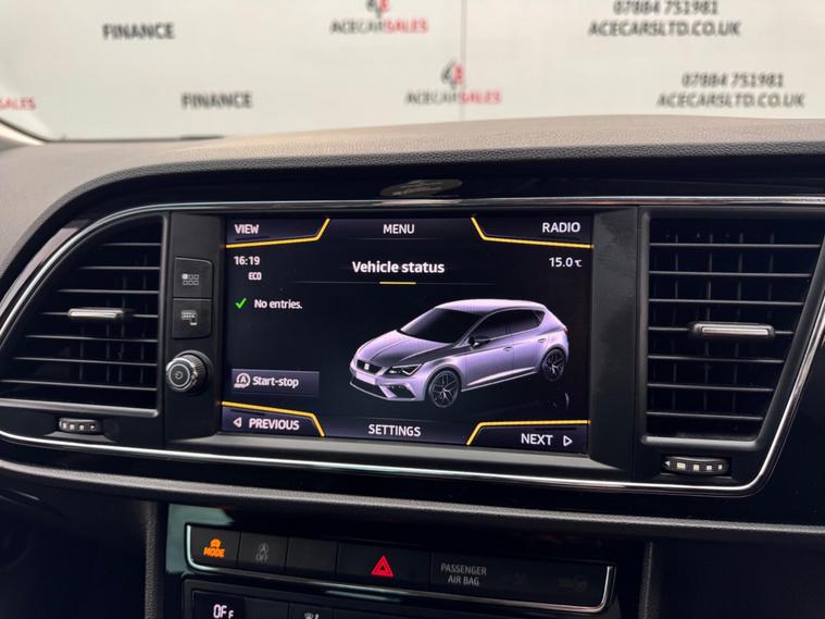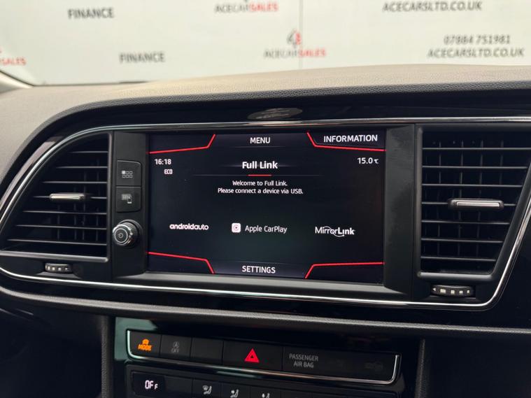 FINANCE & PCP AVAILABLE, COMPLEMENTARY WARRANTY INCLUDED, GOOD CONDITION, WE TAKE PART EXCHANGE! SEAT Leon 1.4 TSI FR Technology Euro 6 (s/s) 5dr Manual 6 Speed. HPI Clear, Full Service History, 12 Months MOT Included With No Advisories, 1 Owner, 2 Keys, EURO6 ULEZ Compliant, Fuel Consumption 54.3MPG, Insurance Group 16, Cruise Control, Speed Warning Function, Parking Sensors - Rear, Start/Stop Function, Sports Suspension - Lower Suspension - 15mm, Electro-Mechanical Power Steering, Electronic Differential Lock System - XDS, Front Assist with City Emergency Braking, Multi-Collision Braking System, Hill Hold Control, Electric Parking Brake With Autohold Function, Traction Control, Electronic Stability Control, Anti-Lock Braking System, Tyre Pressure Warning Light Indicator, Automatic Headlight Control, Daytime Running Lights, Full LED Headlights, LED Interior Illumination Pack, Multi Coloured Ambient Lighting, Electric Windows, Electric Mirrors, Electrically Foldable Exterior Mirrors, Automatic Dual Zone Climate Control, Air Conditioning, Front And Rear Screen Demisters, Colour Touchscreen Media Interface, Apple Carplay, Android Auto, Mirrorlink, Navigation, Traffic Information, Bluetooth, Radio, DAB, AUX, USB, Telephone Connection, Voice Control, Multifunctional Steering Wheel, Cloth And Leather Design FR Seats, FR Design Door Sills, Exterior Badging, Privacy Glass, 17inch Alloy Wheels.ALL VEHICLES ARE FULLY INSPECTED PRIOR TO SALE. Wish to make this purchase hassle free with ease? Feel free to enquire about our competitive Financial packages. We can assist you in securing finance for your New car with ease- regardless of your credit status/history. We include a COMPLEMENTARY WARRANTY on all our vehicles. Ace Car Sales Heywood is a well established Family run business with 30+ years of experience in the Motor trade industry! We pride ourselves on offering a personalised service to suit your needs. Visit our website for more information on our vehicles - dealer's website 'Buy With Confidence At Ace Car Sales' Be our next happy customer today! www.acecarsltd.