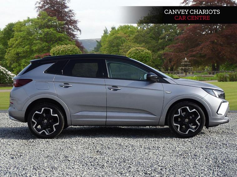 This 2023 Vauxhall Grandland Turbo Ultimate is a superb example, having had only one owner since new. This Euro 6 compliant 1.2 litre petrol model offers a refined driving experience, enhanced by AGR approved ergonomic active heated sports front seats for ultimate comfort. You'll also appreciate the convenience of a wireless charger, dual zone electronic climate control to keep everyone comfortable, and side blind spot alert for added safety. The included Winter Pack ensures warmth with heated seats and a heated steering wheel, making it ideal for any season.This Grandland Turbo Ultimate stands out with its impressive fuel economy, achieving up to 46 miles per gallon, which indicates it is more economical than many similar vehicles. It also benefits from a low insurance group, suggesting lower running costs. Furthermore, the generous boot space provides ample room for all your luggage or shopping, and its low CO2 emissions highlight its efficiency and environmental consideration compared to other cars in its class..