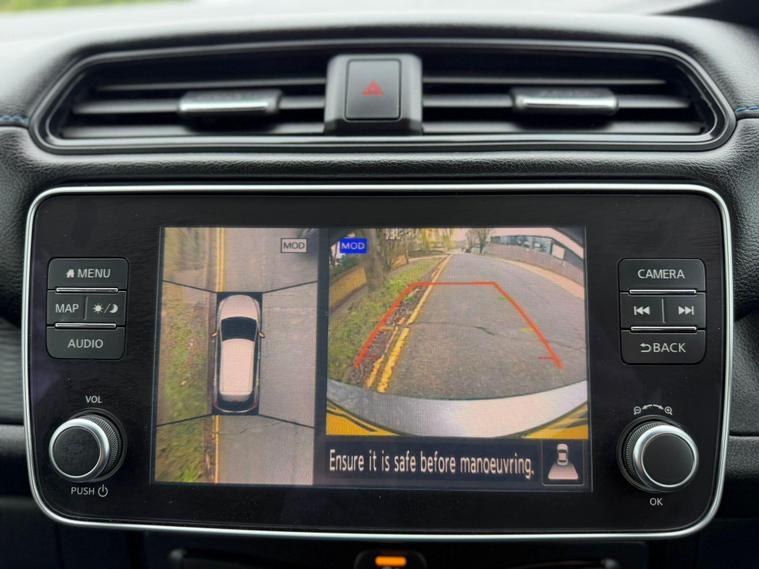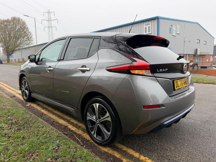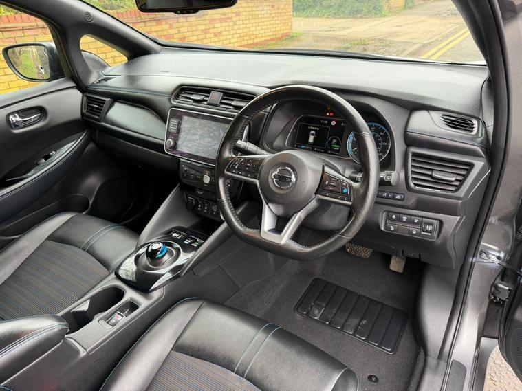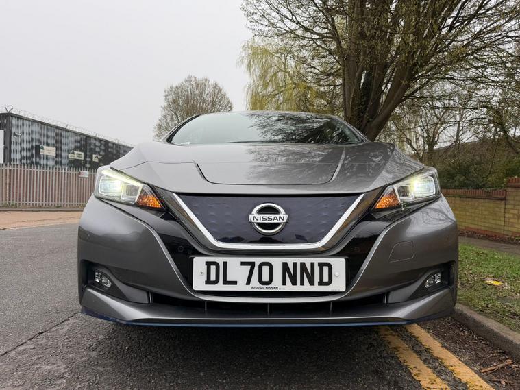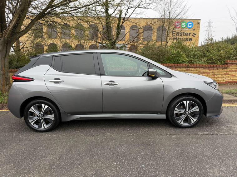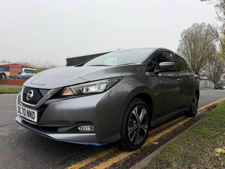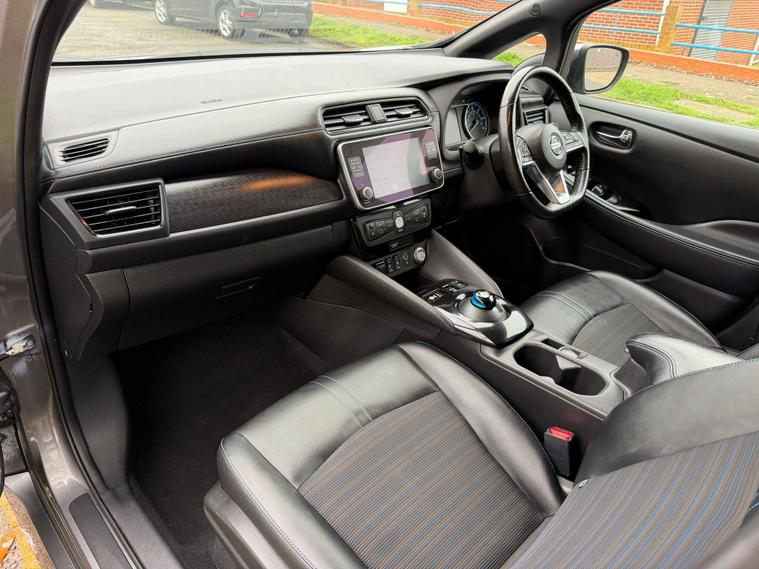 This 2020 Nissan Leaf e+ n-tec offers an impressive electric driving experience with a substantial 62 kWh battery, providing a maximum range of 239 miles when new. As an electric vehicle, it represents a clean and efficient way to travel. Key features include an advanced AVM with Moving Object Detector, offering a 360 degree camera for effortless parking assistance. You'll also benefit from I Key and PES for convenient keyless entry, automatic headlights that switch on when needed, and Intelligent Cruise Control for a more relaxed journey. The Intelligent Auto Headlight system with full LED lights ensures excellent visibility.The Nissan Leaf e+ n-tec stands out with its remarkable acceleration, achieving 0 to 62 miles per hour in just 6.9 seconds, demonstrating its responsive performance. This model also boasts a large boot space, making it practical for everyday use and longer trips. For charging, a full charge at home using a 7kW charger takes approximately 11 hours and 30 minutes, while rapid public charging can take you from empty to 80% in around 2 hours, highlighting its versatility for different charging scenarios..