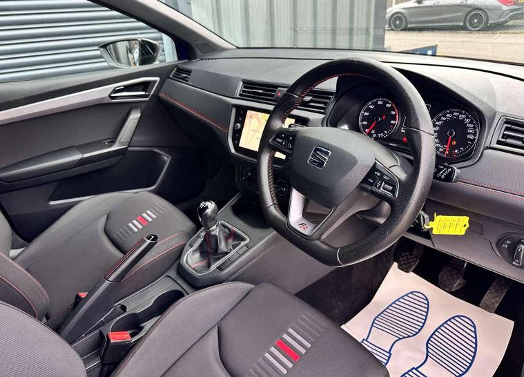 SEAT Ibiza 1.0 FR MPI 5dr Euro 6 ULEZ FREE. Finished in Mystery Blue Metallic with black cloth interior.17'' alloy wheels, DAB radio, Apple CarPlay, SatNav, Bluetooth, cruise control, privacy glass, electric front windows, automatic headlights, LED DRL's, rain sensing wipers, perforated leather wrapped flat bottom multifunction steering wheel with red stitching, auto dimming rear view mirror. Here at Saracen Motor Group we have been awarded AA Platinum dealership recognition along with being nominated for best customer service by Autotrader for 2021, 2022, 2023, 2024 & 2025. We are a 5-star dealership with over 600 5-star reviews across all internet platforms including Autotrader and have been regarded as one of the best dealerships to buy from in the UK.Our preparation team inspects each vehicle to the highest level possible for its age and mileage. You can rest assured your next car has been cared for to the highest standard. Service history, V5 and the HPI certificate will all be present on viewing and collection. With our location based in Battlesbridge, Essex you can enjoy a haggle-free buying experience where you can drive away the same day if prior arranged, additional fees apply please see our website for details..