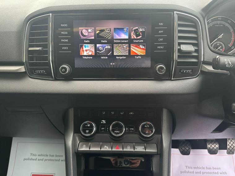 This Skoda Karoq TSI SE Nav Plus from 2018 is a superb example, having been owned by just one careful keeper since new. It features a responsive 1.0 litre petrol engine, meeting Euro 6 emissions standards, and comes in the well appointed SE Nav Plus trim. Inside, you'll find a DAB digital radio and Bluetooth connectivity for seamless entertainment and calls, while dual zone climate control ensures comfort for all occupants. Navigating tight spots is made easier with front and rear parking sensors, and the light and rain sensor with auto dimming rear view mirror adds convenience. For longer journeys, the Adaptive Cruise Control takes the strain out of driving.This particular Karoq stands out with its impressive fuel economy, achieving up to 53 miles per gallon, which is excellent for its class. It also benefits from a low CO2 emission rating and falls into a low insurance group, making it an economical choice to own and run. Furthermore, you'll appreciate the generous boot space, perfect for shopping trips or family holidays. These highlights demonstrate how this Skoda Karoq offers a superior ownership experience compared to many other vehicles.This vehicle has service history and will be freshly serviced at point of sale and has current MOT until October 2026.Being a one owner from new vehicle it is presented in excellent condition throughout and drives superb. Viewing, test drive and inspection welcome.Finance available..